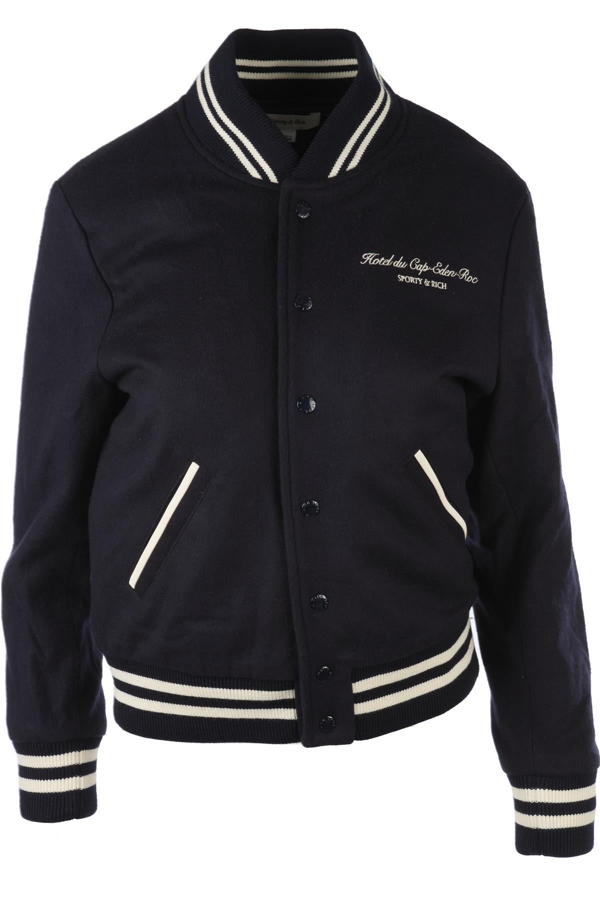 SPORTY & RICH NAVY WOOL BOMBER JACKET SMALL