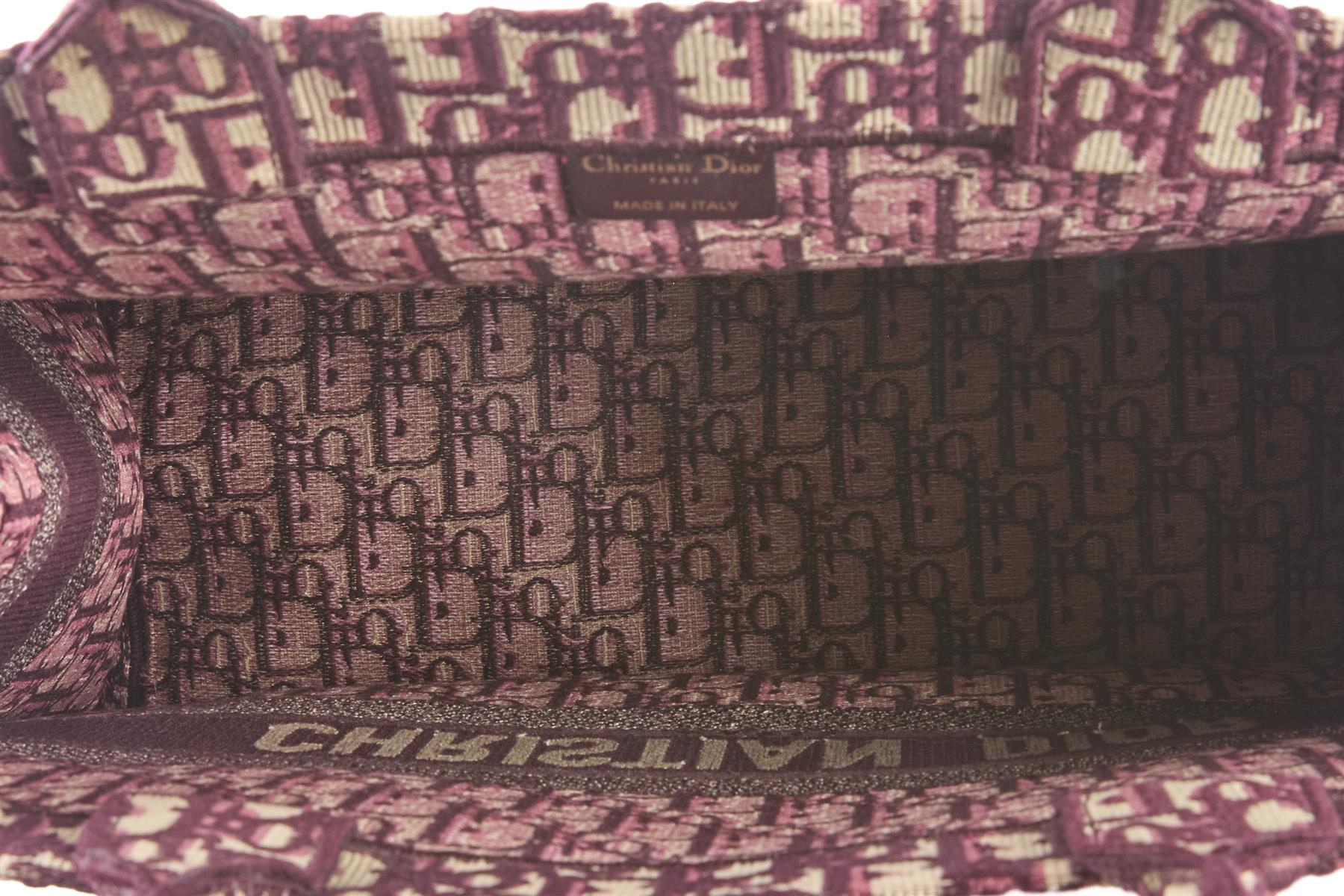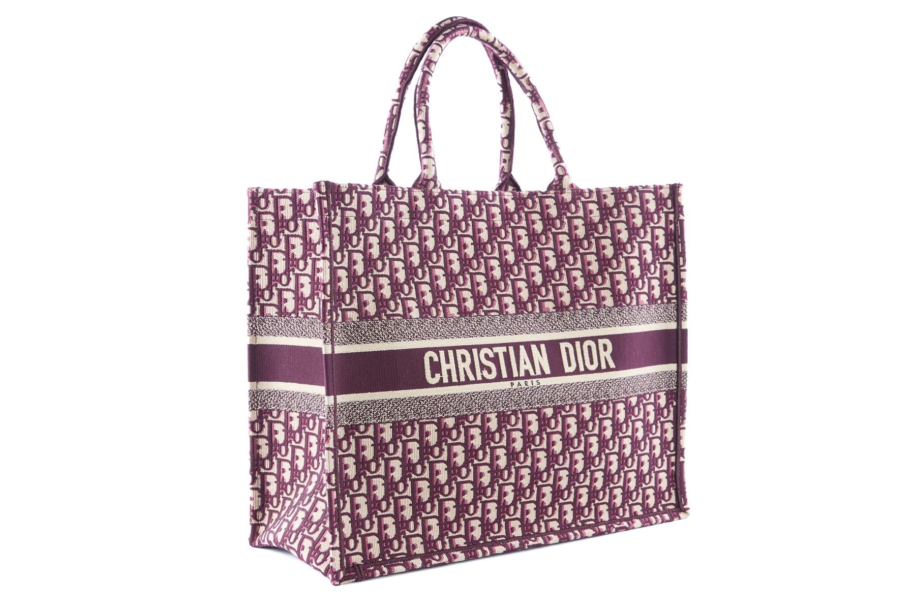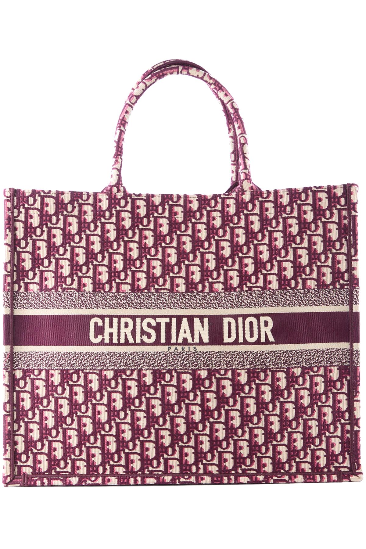 Christian Dior Burgundy Book Large Oblique Canvas Tote Bag. Burgundy and beige. Open Top. Does not come with - dustbag or box. Book Tote. Height: 13.75 in. Width: 16.5 in. Depth: 6.5 in. Handle drop: 6.25 in.
