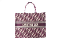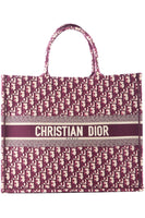 CHRISTIAN DIOR BURGUNDY BOOK LARGE OBLIQUE CANVAS TOTE BAG