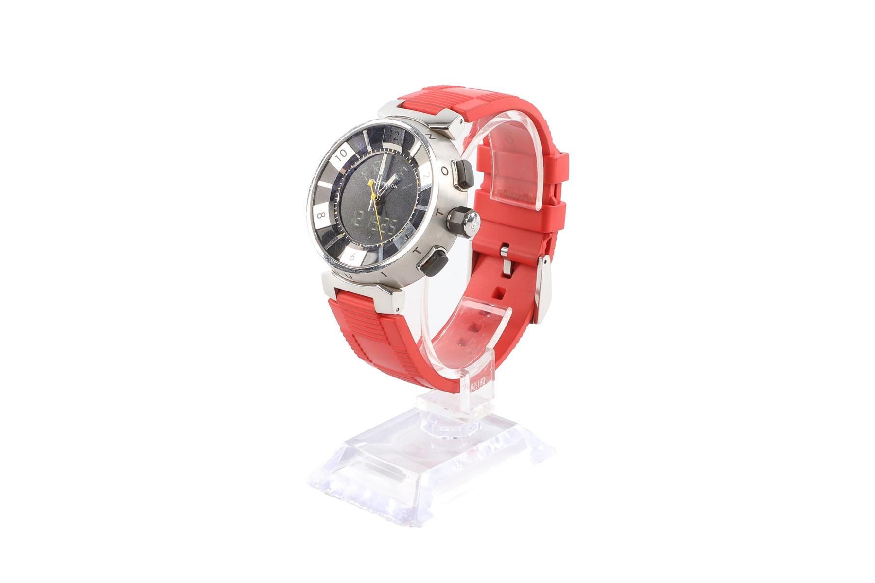 Louis Vuitton Red Tambour Wrist Watch. Red. Does not come with - dustbag or box. One Size.. Width: Strap: 0.7 in, Face: 1.2 in. Circumference: Min: 2 in, Max: 2.5 in.