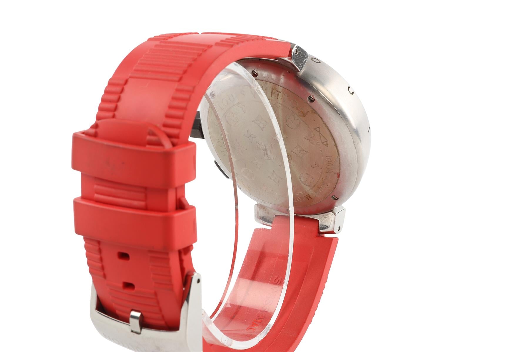 LOUIS VUITTON RED TAMBOUR WRIST WATCH