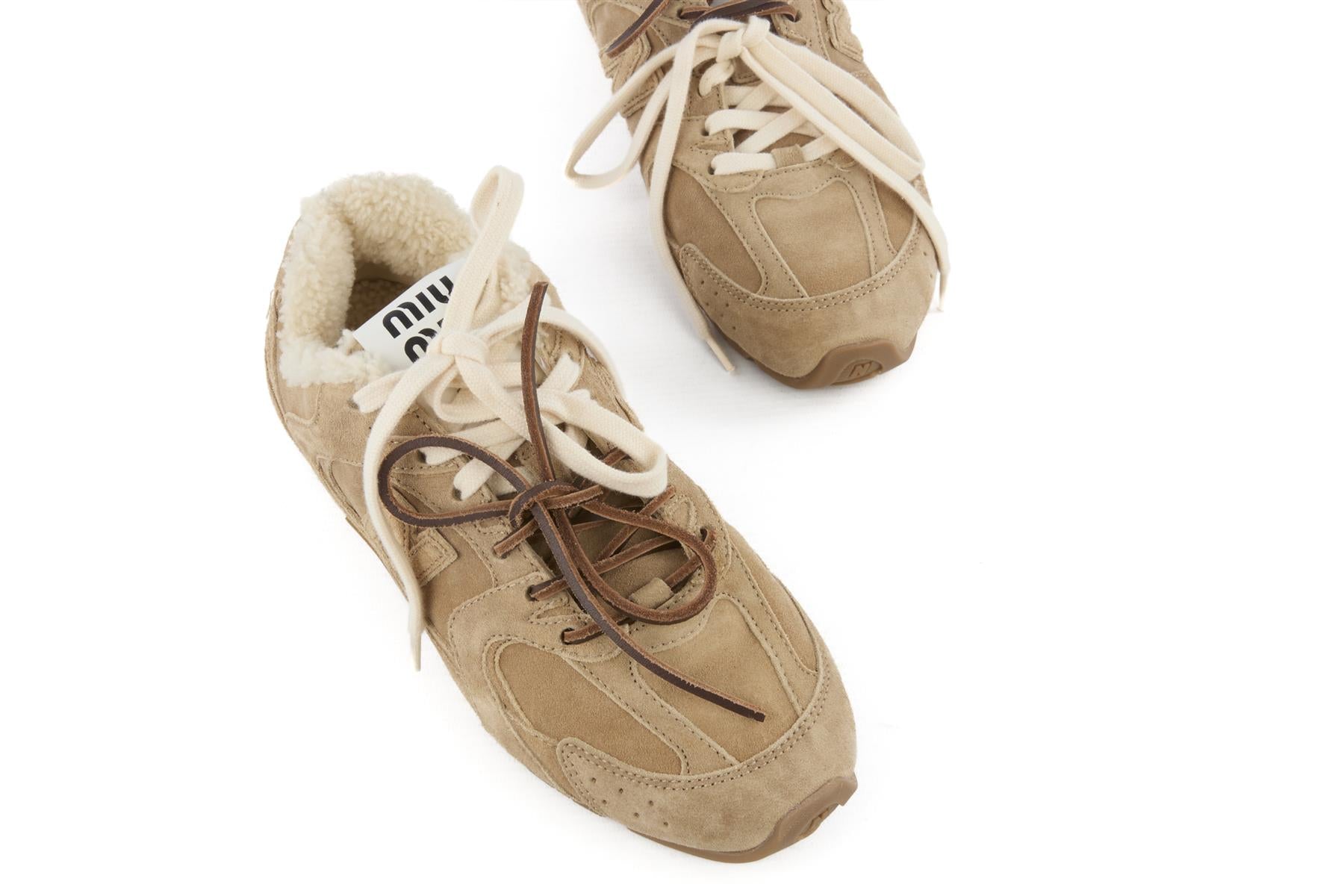 • New Balance + Miu Miu Beige 530 Sl Suede Sneakers.