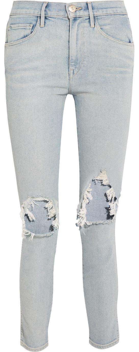 - Shredded holes accent the knees of these faded 3x1 cropped jeans.