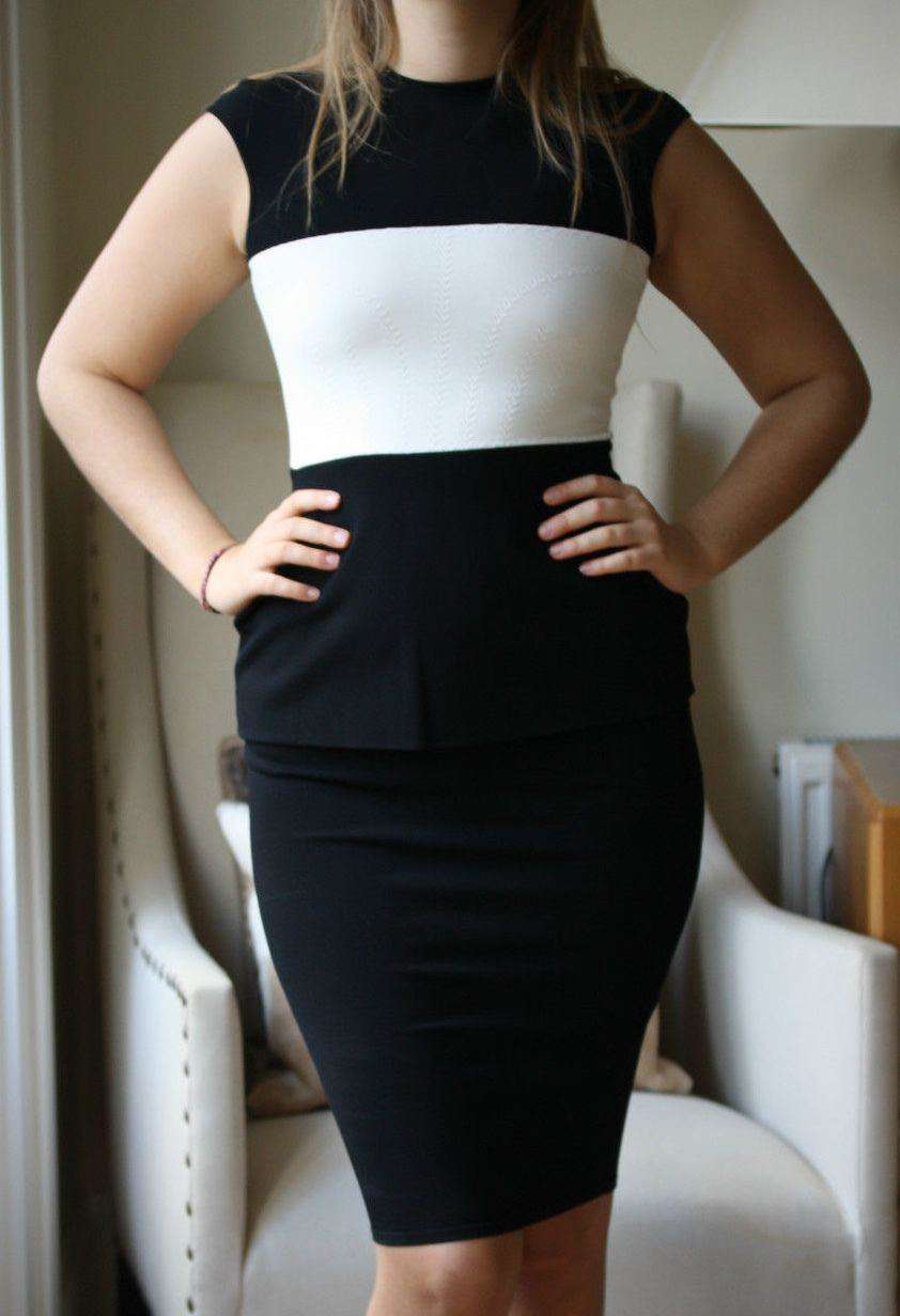 ALEXANDER MCQUEEN BLACK WHITE PEPLUM DRESS SMALL