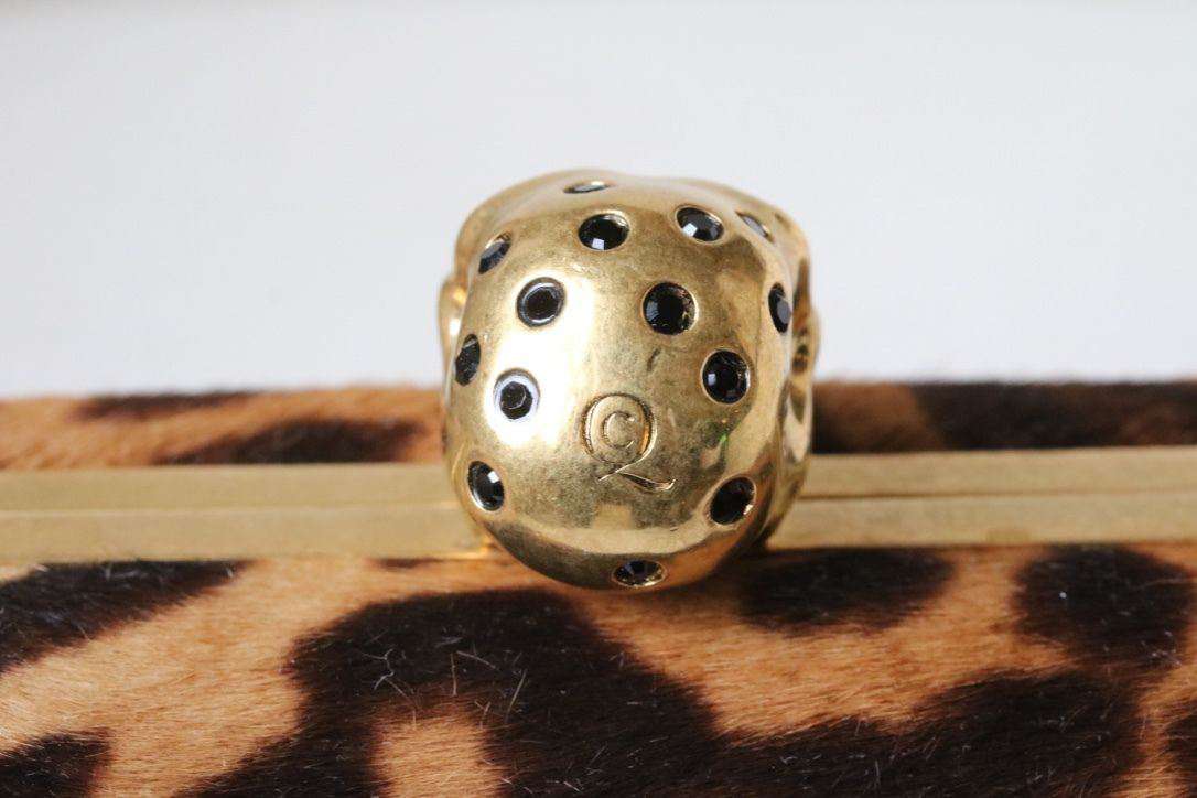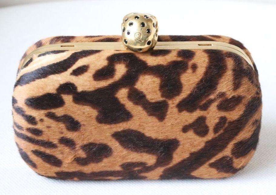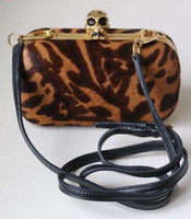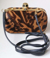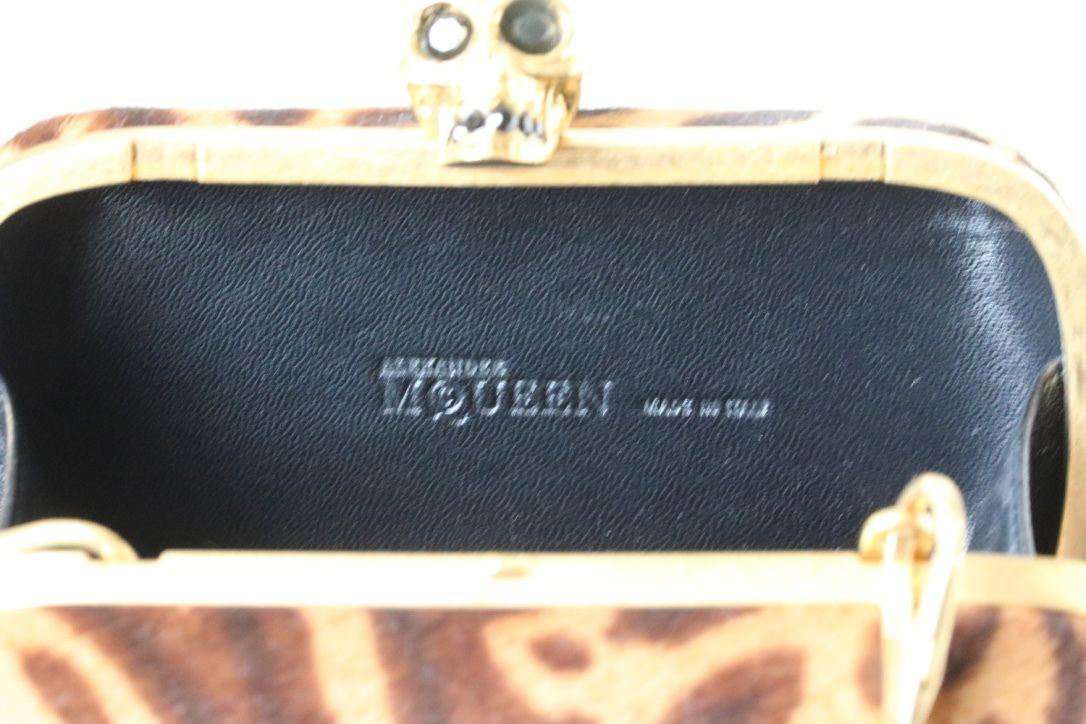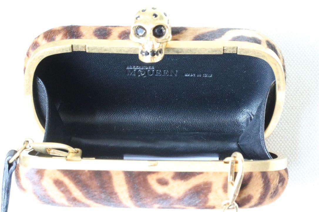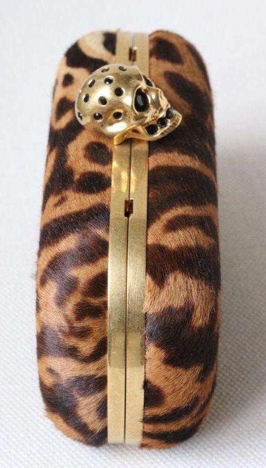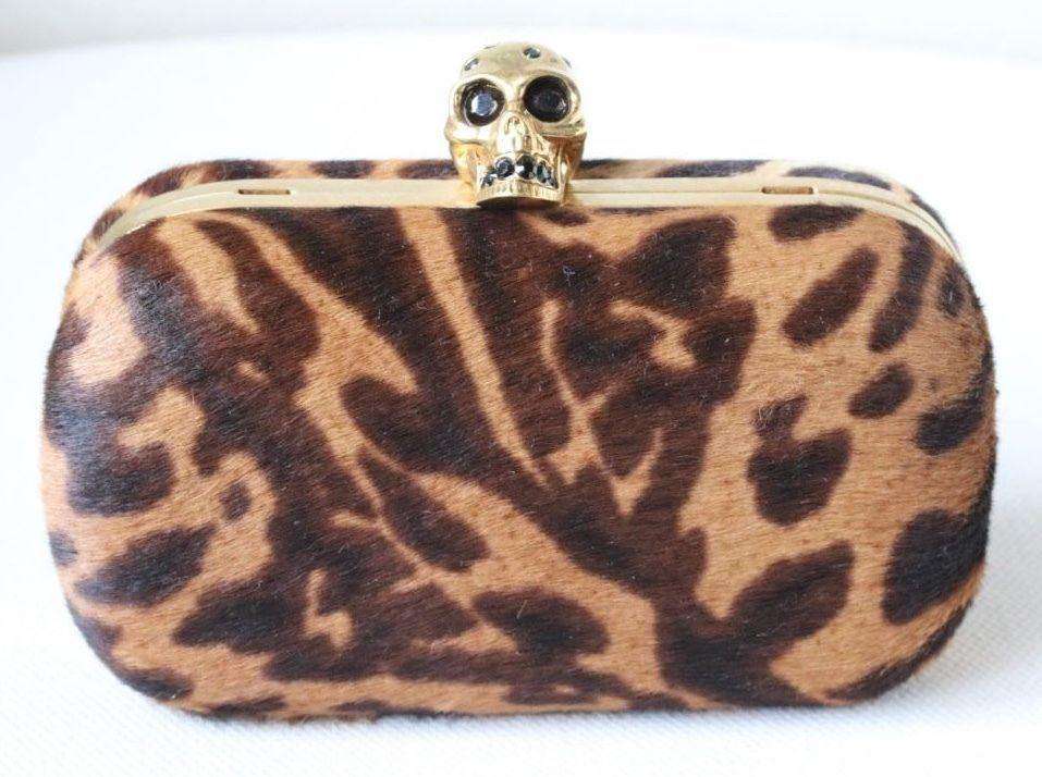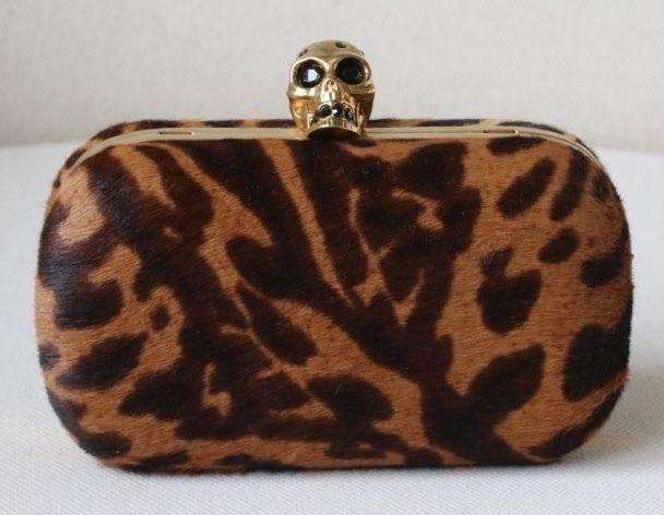 Alexander McQueen Clutch. Alexander McQueen’s striking hard shell clutch bag has been crafted from pony hair and complete with a Swarovski crystal embellished skull clasp. Featuring a bold animal print, this statement bag is ideal for party season. Dimension: 9cm x 15cm x 4cm RRP: £1,365 Guaranteed to be authentic, so please do not ask. Ref: S