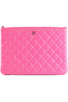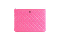 - Chanel Pink 2014 O-Case Medium Quilted Caviar Leather Clutch.