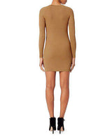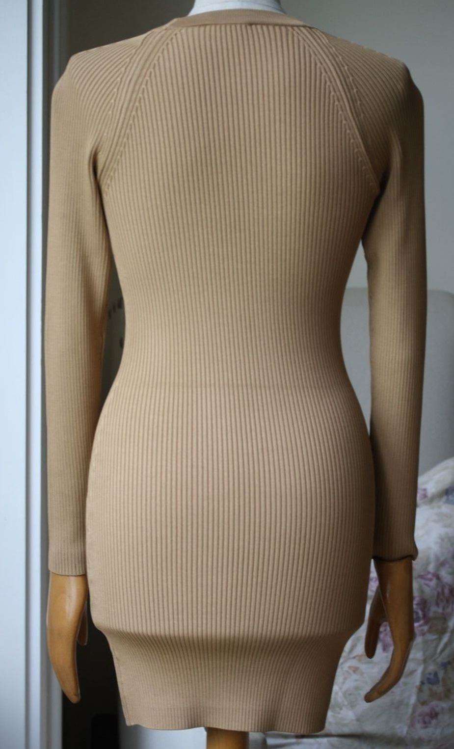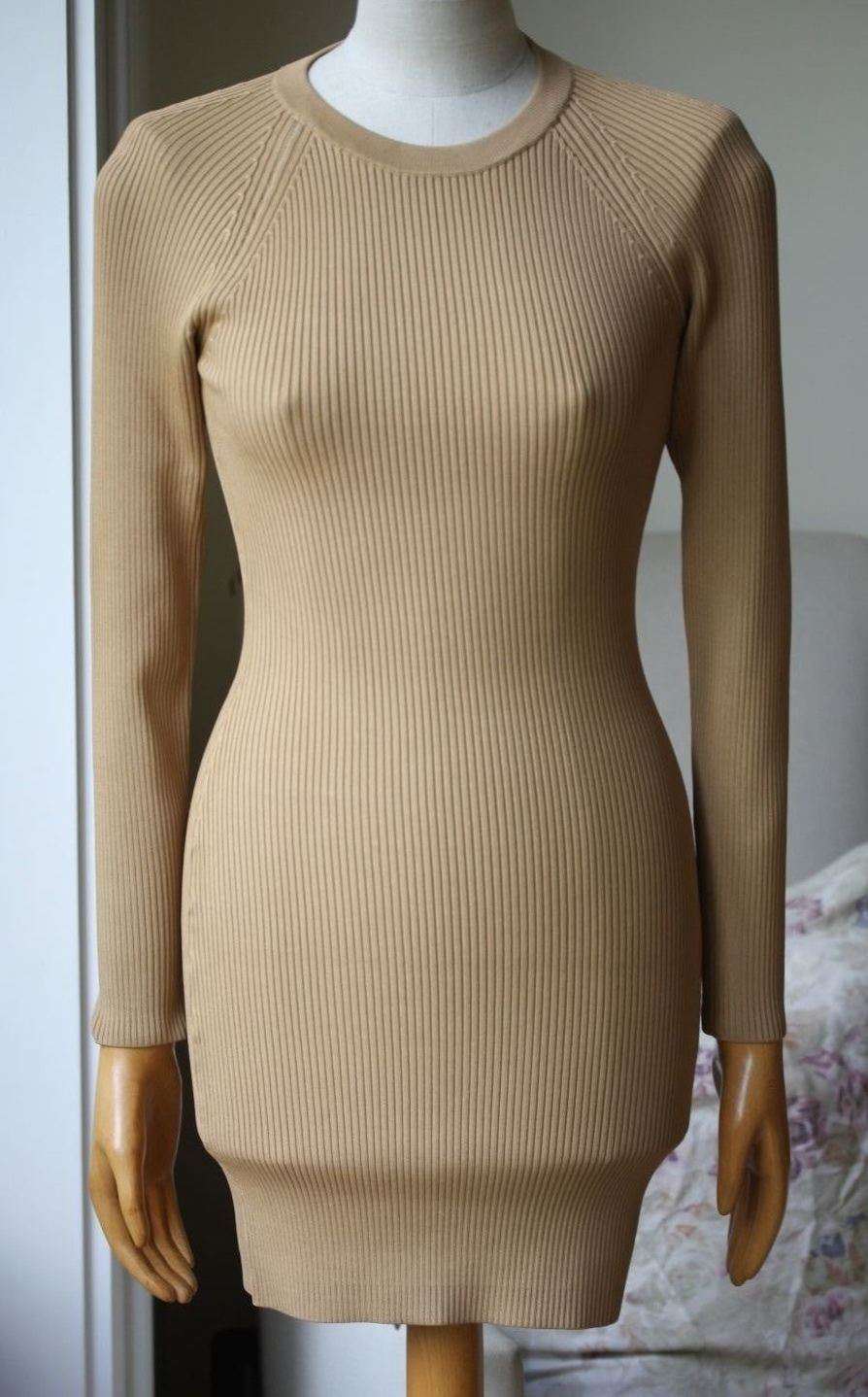 A.L.C. NICK LONG-SLEEVE BEIGE RIBBED STRETCH DRESS SMALL