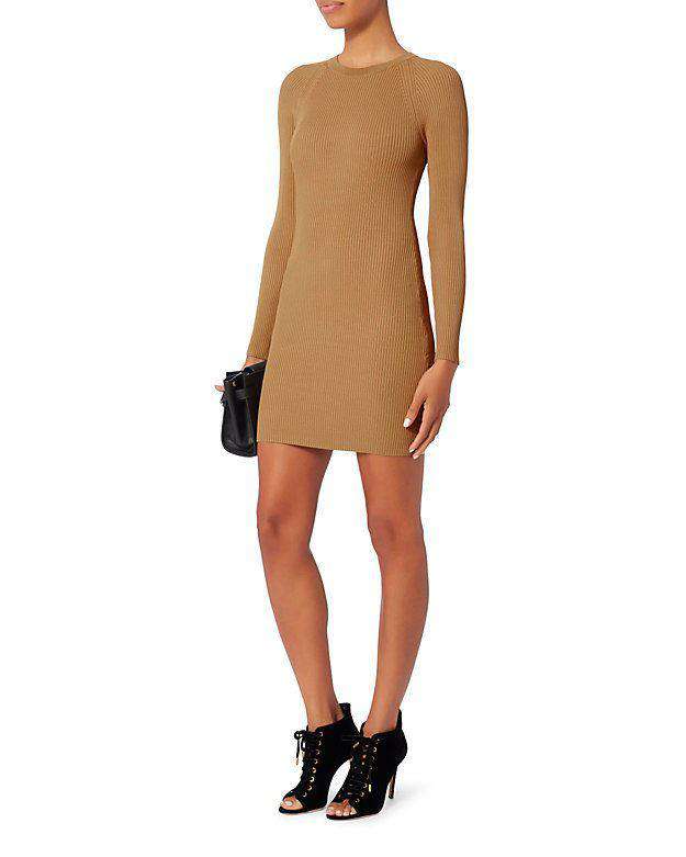 A.L.C. Dress. . Slender ribbed knit dress with long sleeves. In khaki. 94% Rayon, 5% Nylon, 1% Elastane. Size - Small (IT 40, UK 8, US 4, FR 36) RRP: £380 Ref: RT9