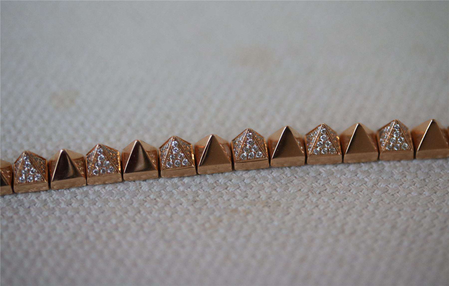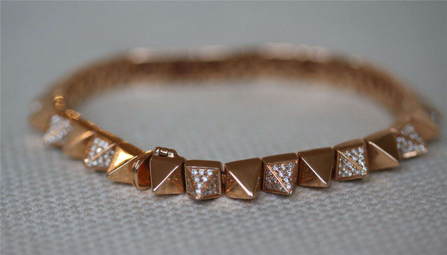 18K rose gold alternating diamond link spike bracelet. 2.6cts diamonds.