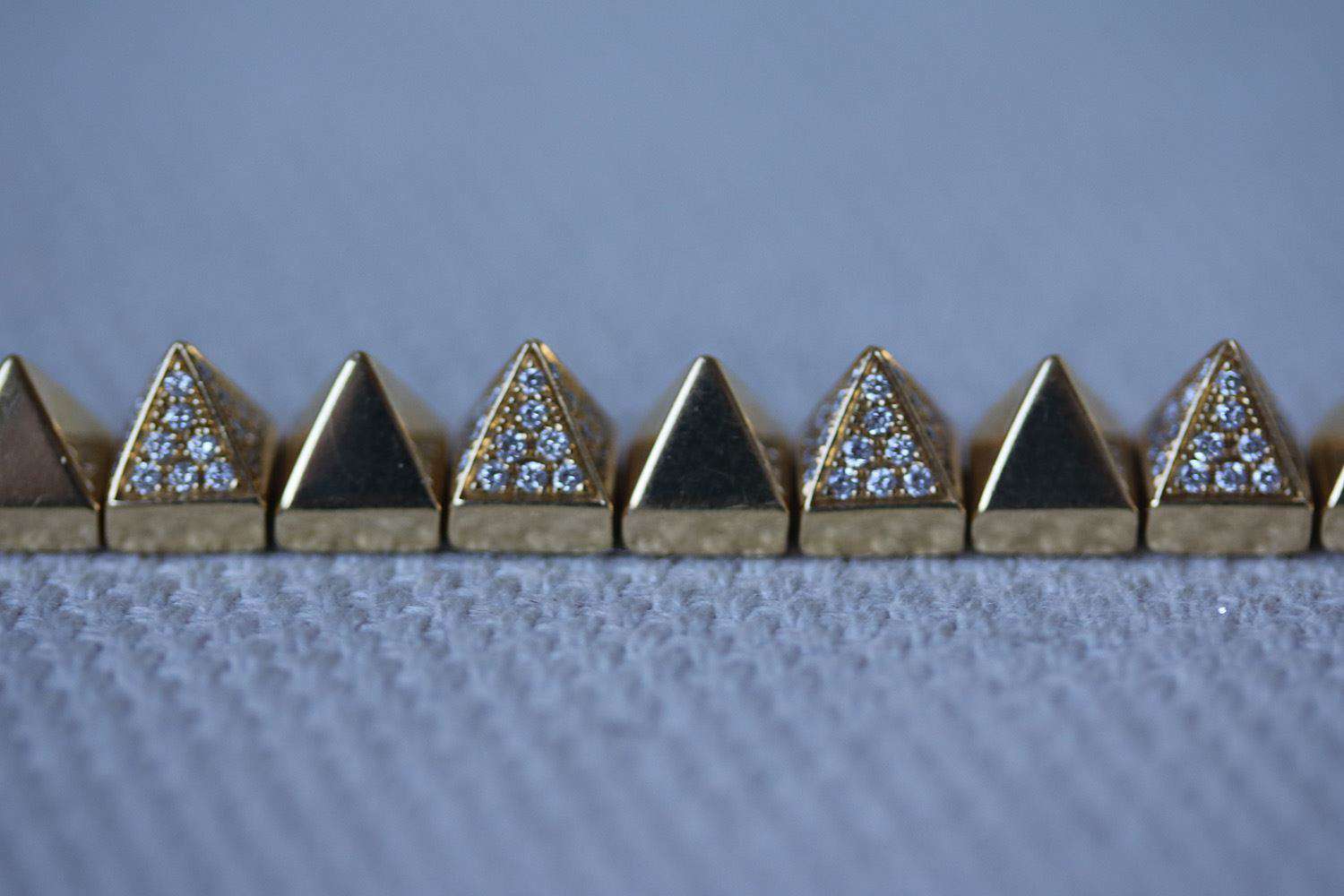 18k yellow gold alternating diamond link spike bracelet. 2.6cts diamonds