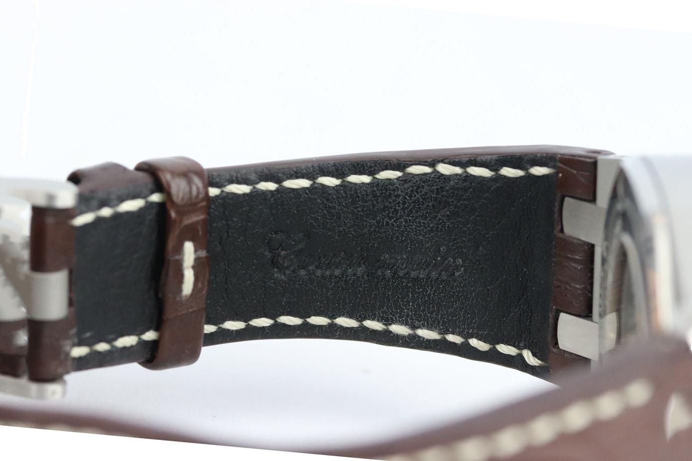 - This ’Royal Oak’ 42mm watch by Audemar Piguet has been crafted at the brand's Swiss atelier from steel with an intricate automatic movement and has a black dial and finished with a leather strap.