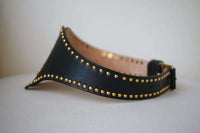 A number of looks on Emilio Pucci's runway were styled with waist belts, proving just how versatile the frame-defining piece really is. This version is crafted from supple leather and has a wide, corset-inspired silhouette that's outlined with polished gold studs. Black leather (Calf). Buckle fastening. Made in Italy.