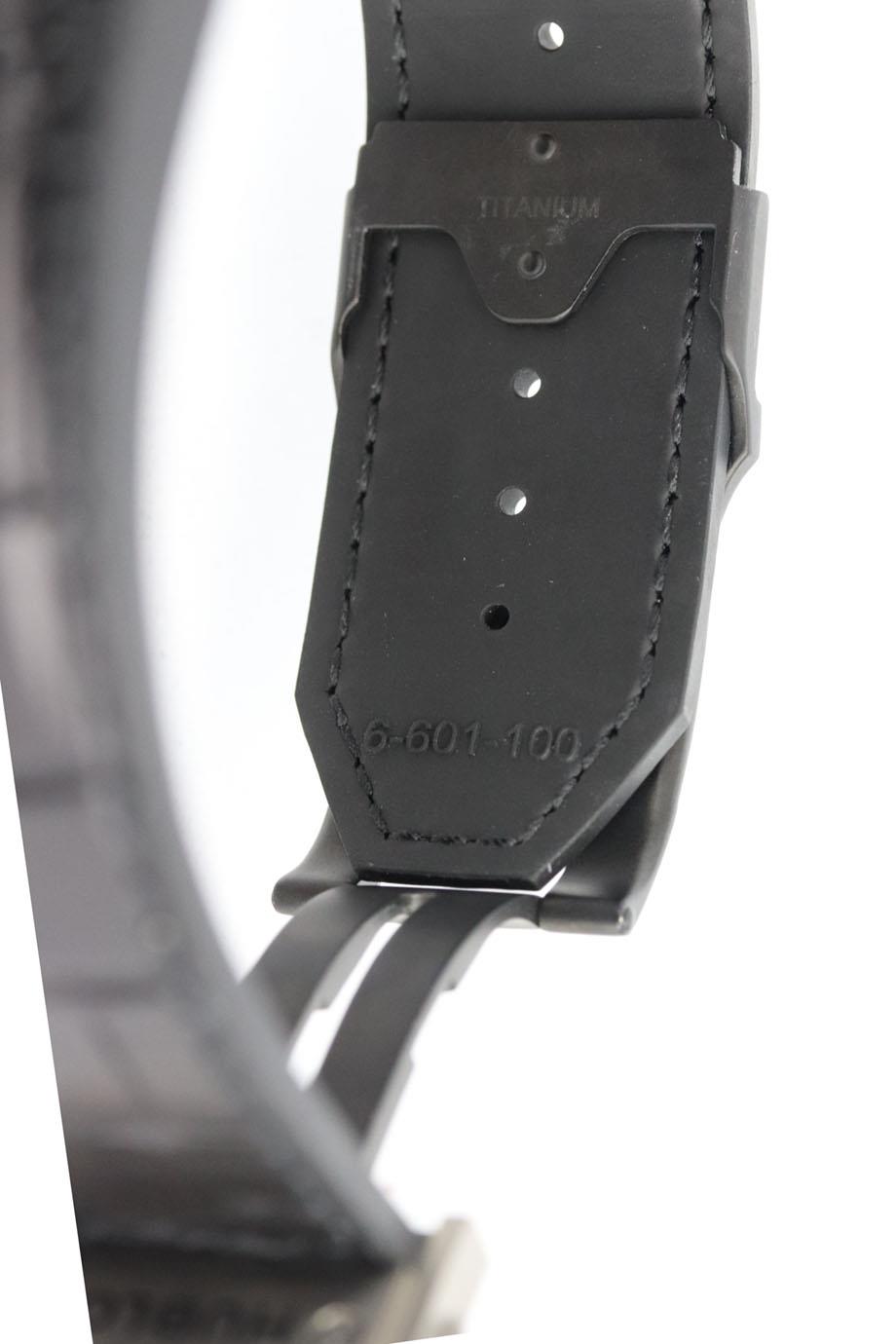 - Black alligator, black dial, titanium.