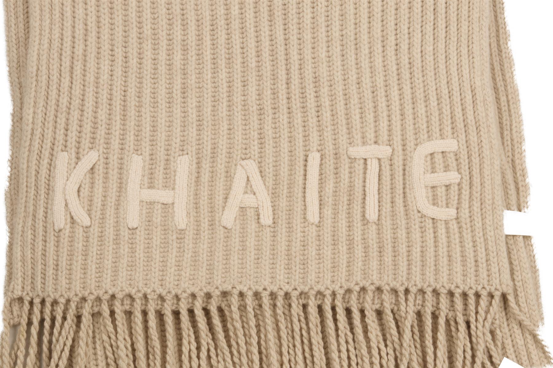 Khaite Beige Cashmere Scarf. Beige. 100% Cashmere. One Size. Length: 95 in. Width: 17 in.