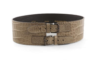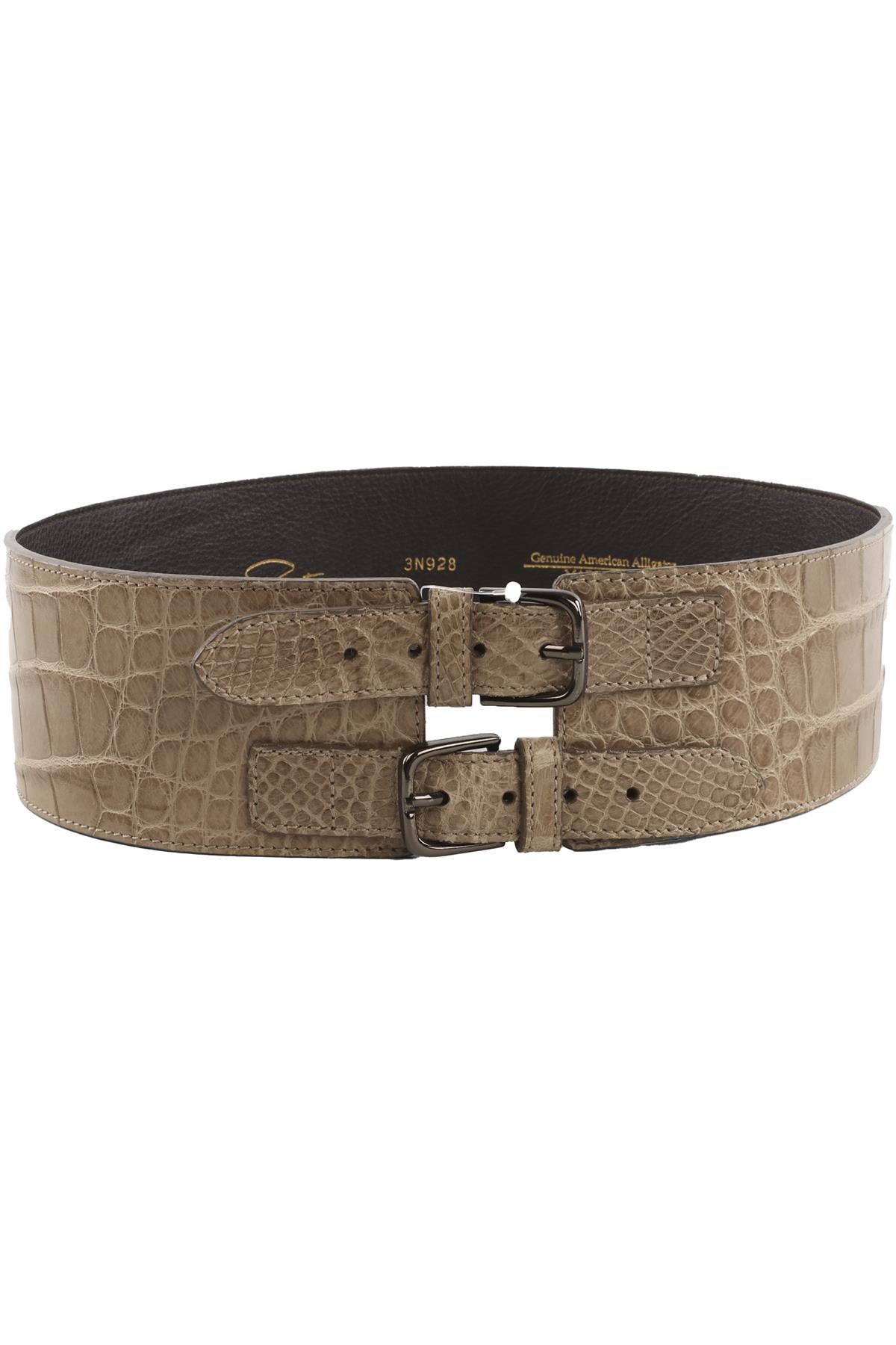 OSCAR DE LA RENTA TAUPE ALLIGATOR WAIST BELT SMALL