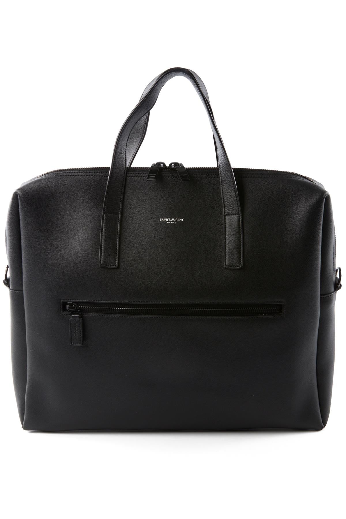 Saint Laurent Black Men'S Bold Leather Briefcase. Black. Zip fastening - Top. Does not come with - dustbag or box. Height: 12 in. Width: 14 in. Depth: 3.5 in. Handle drop: 4.5 in.