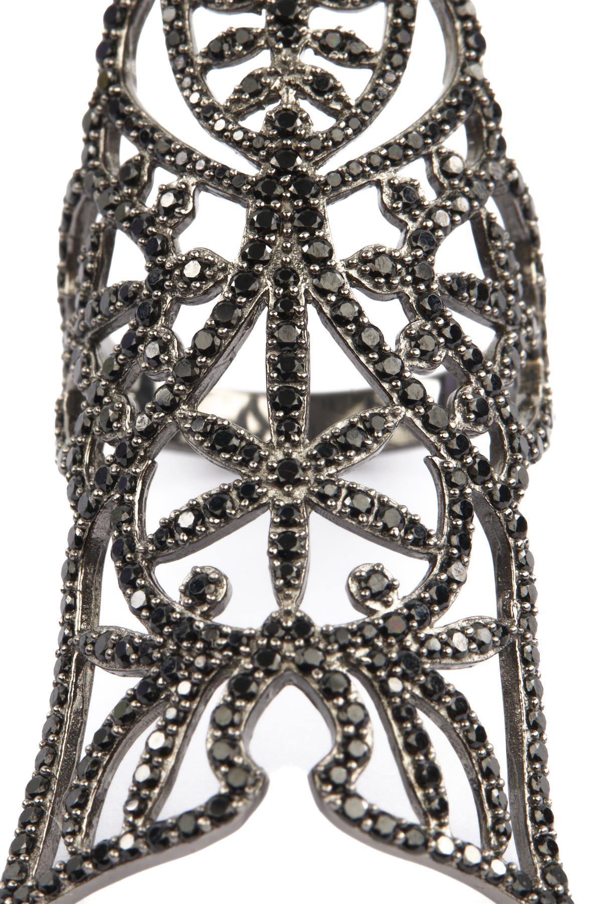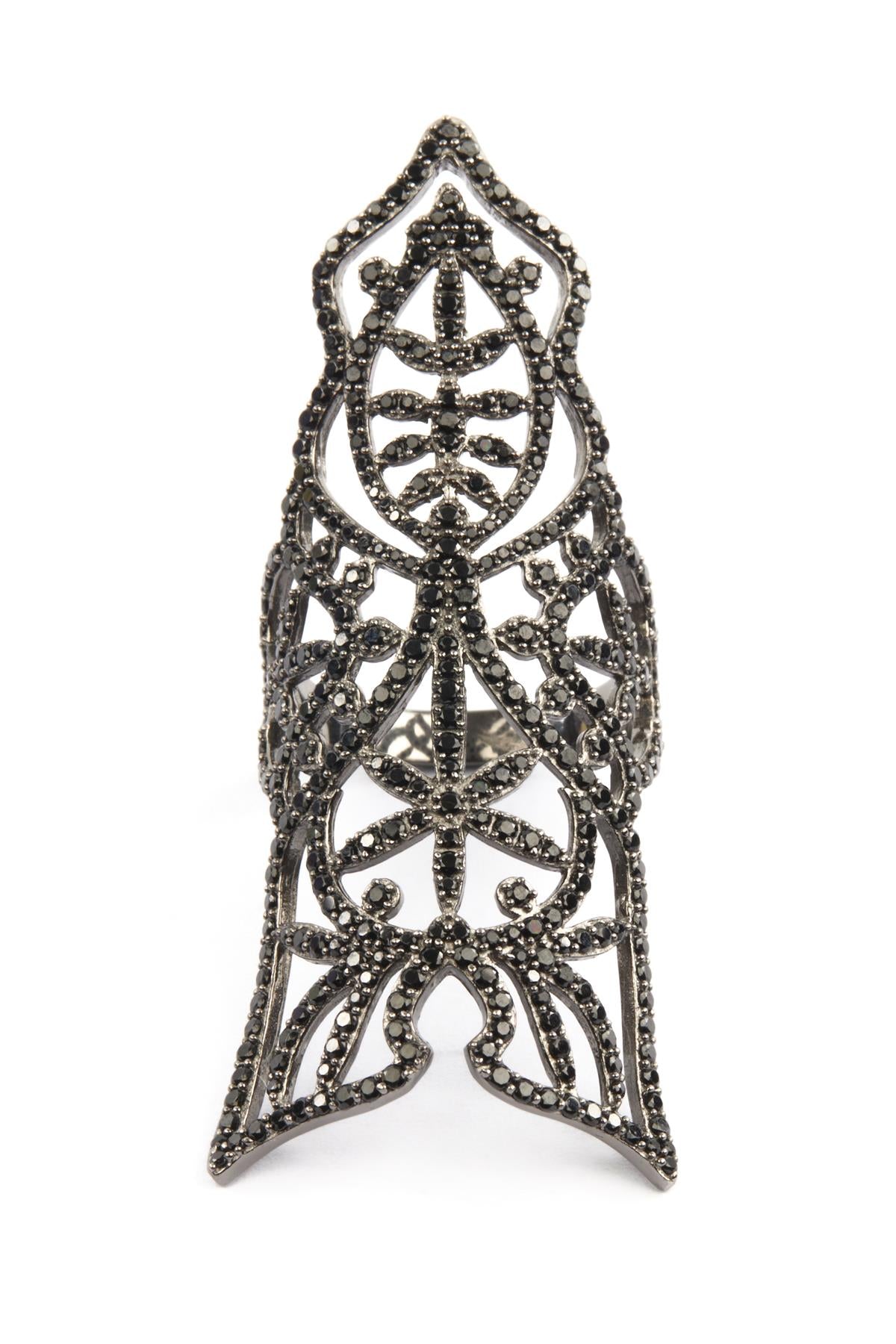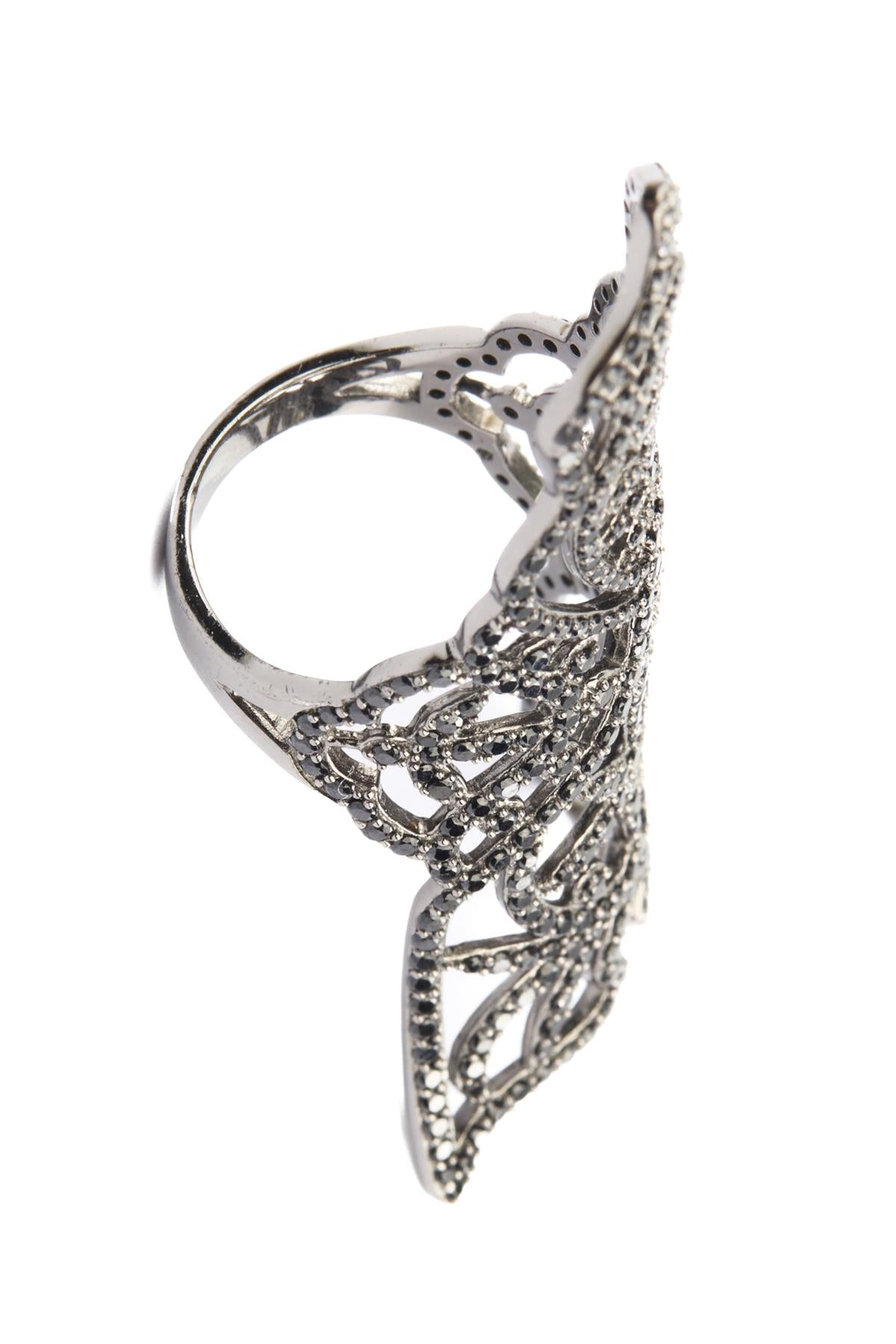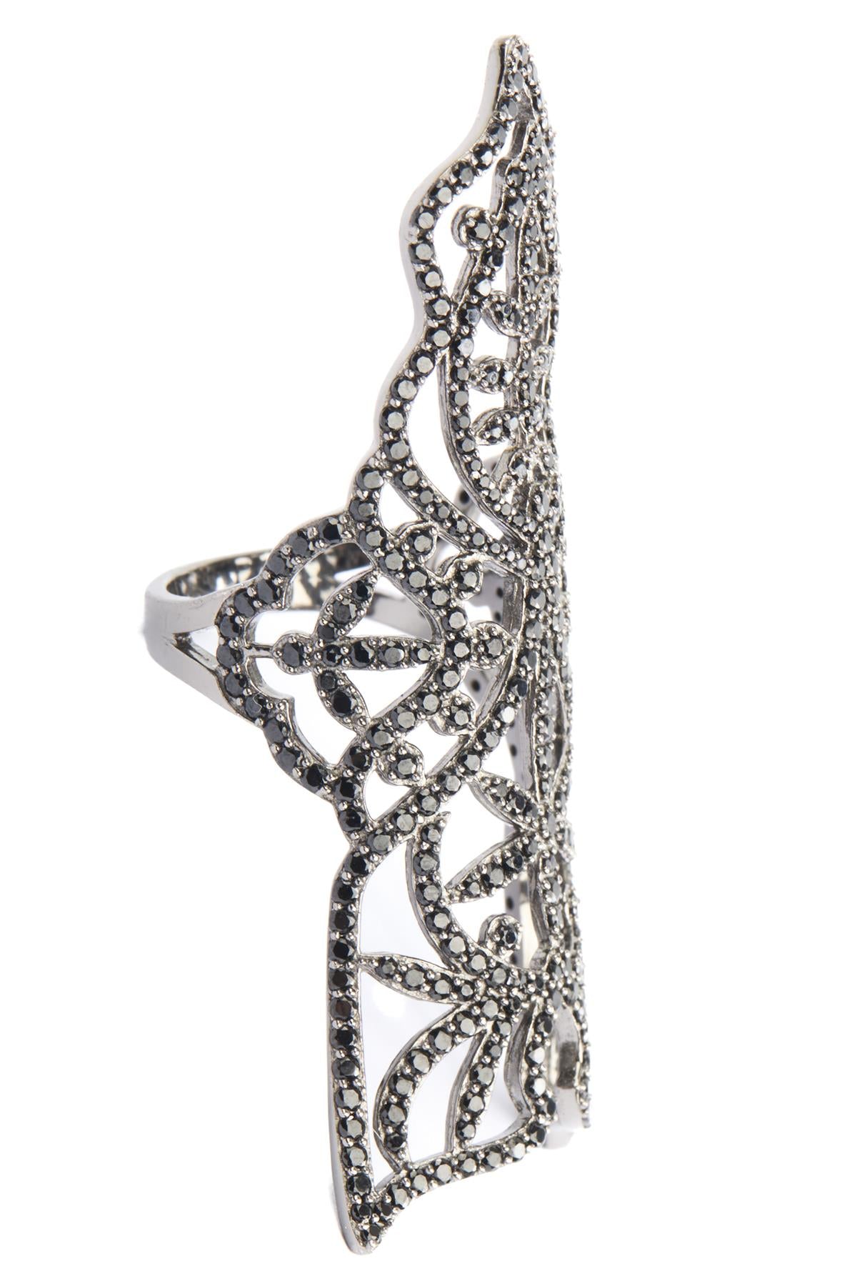 Silver Armour Ring. Silver and black. Slips on. 925 Silver. Height: 57 mm. Width: 35 mm. Depth: 20 mm.