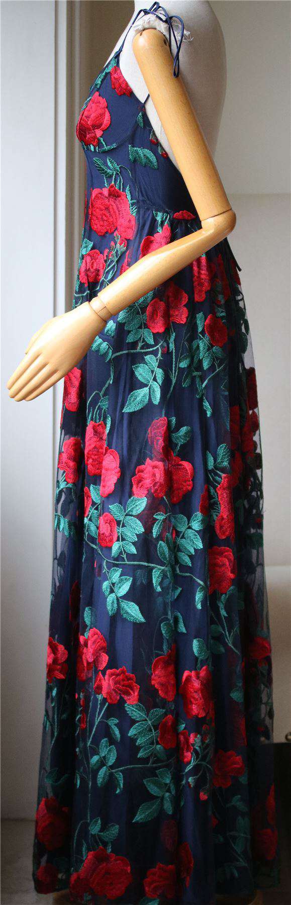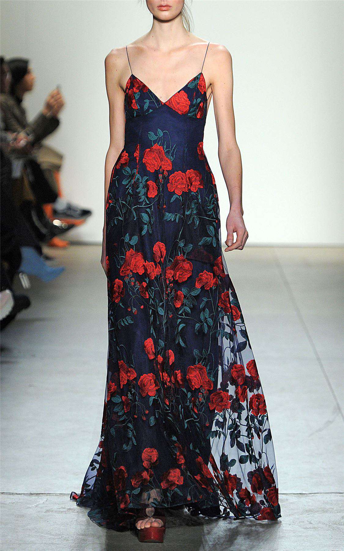 This Adam Selman embroidered tulle overlay gown features a front hip pockets and exposed back. Front hip pockets. Exposed back. Fully lined. Composition: 47% cotton, 45% acetate, 8% metallic.