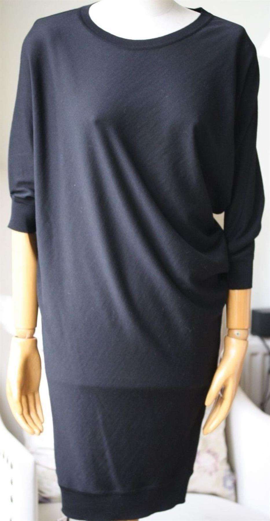 Alexander McQueen's asymmetric sweater dress has been crafted in Italy from soft mid-weight wool. This dolman-sleeve style will work day or night. Black mid-weight wool. Asymmetric dolman sleeves, ribbed trims. Slips on. 100% wool. Designer colour: Black.