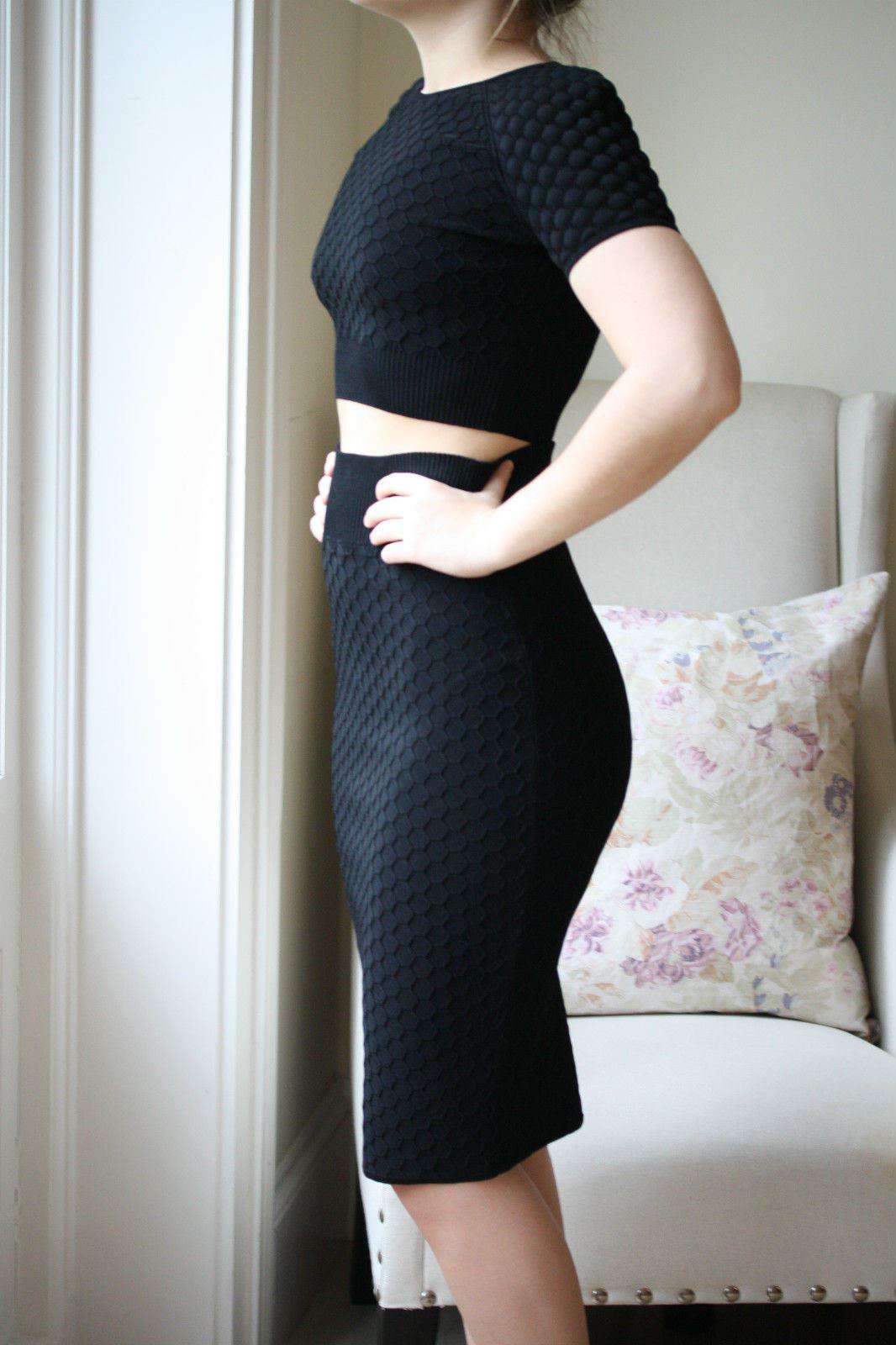 ALEXANDER MCQUEEN BLACK HONEYCOMB KNIT TOP MEDIUM
