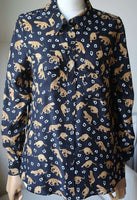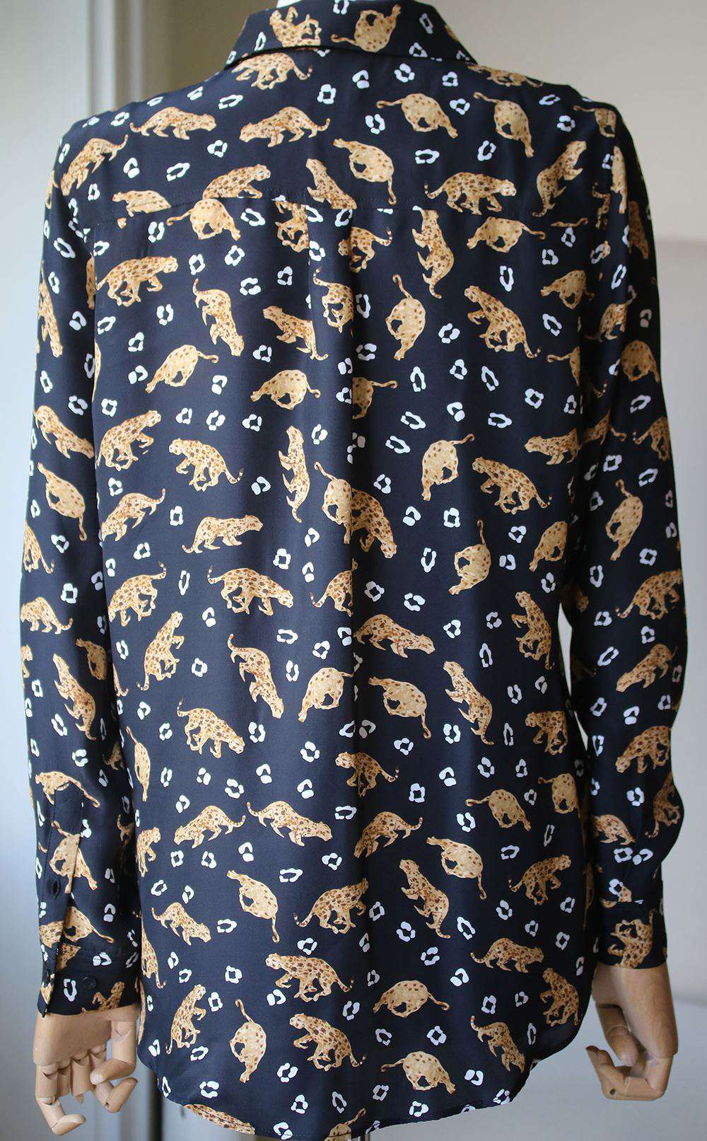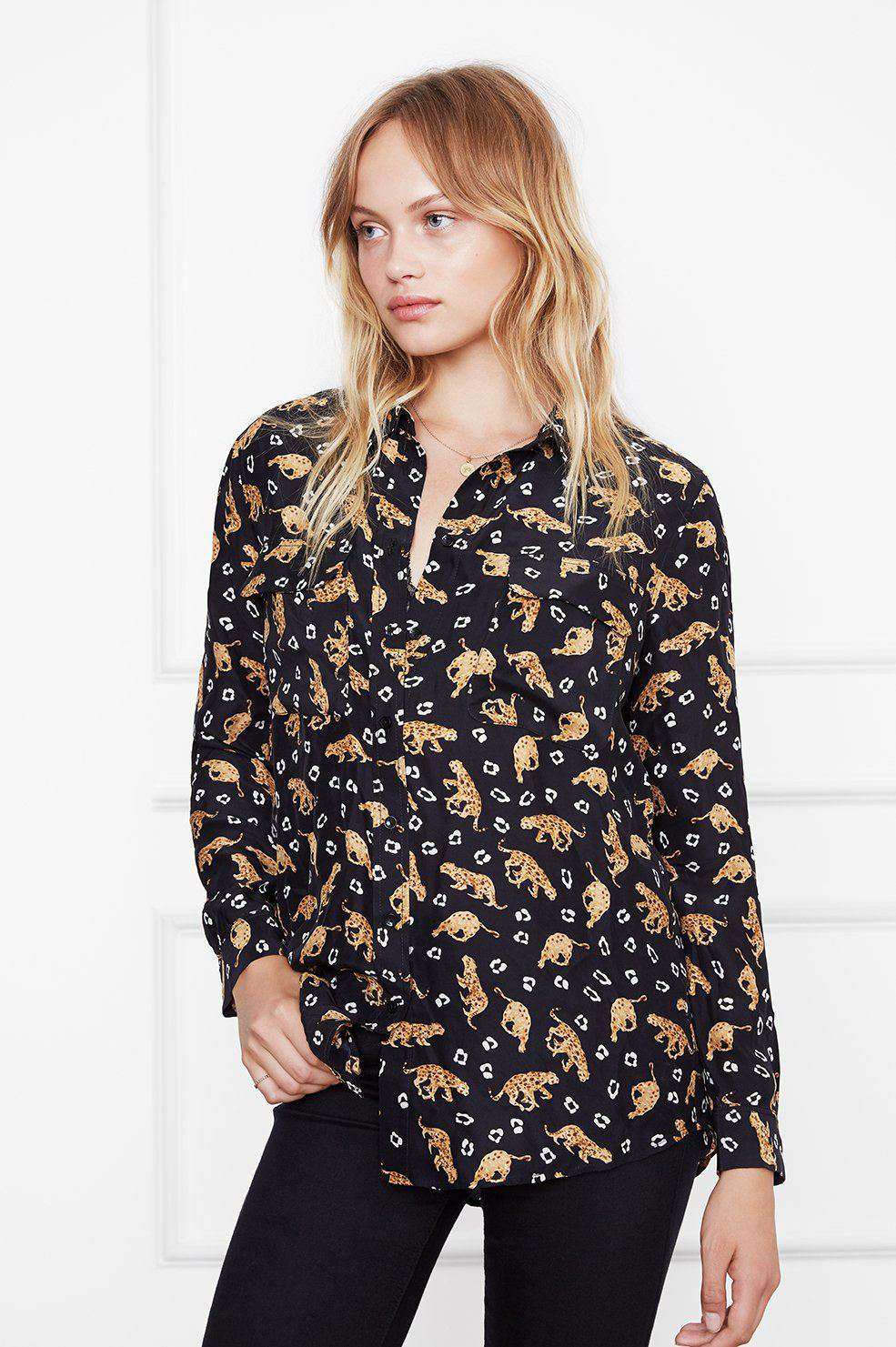 Crafted from buttery soft silk in a classic silhouette, this sophisticated button-up looks perfect tucked into any pair of jeans with a belt. The slim shape flatters, while two-pocket detail brings a special touch. Leopard Print. 100 % Silk.