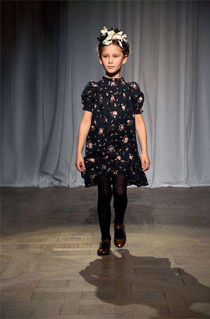 BONPOINT GIRLS BLACK FLORAL FALBALA DRESS 6 YEARS