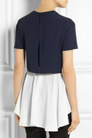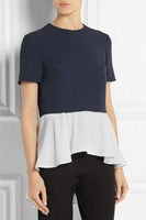 Mirroring the waist-flattering silhouettes of Alexander McQueen's collections, this two-tone crepe top has been made in Italy. the ruffled peplum will flatter curvy and athletic figures alike. Balance the fluidity with tailored pants and heels.