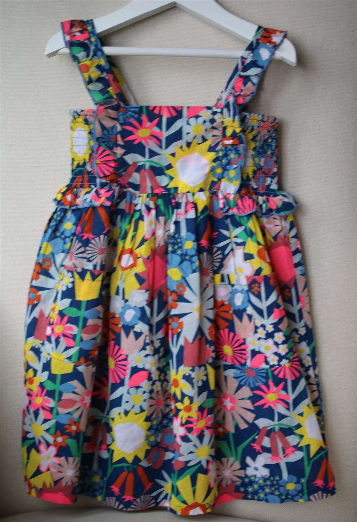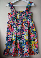 Sleeveless cotton dress in bright floral collage print featuring elasticized sides, criss-cross straps and frill front detail. The fit can be quite small, so Stella McCartney advises you to choose a size up if you want room to grow.