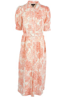 Me+Em Orange Linen Maxi Dress. Orange. Short Sleeve. V-Neck. Button fastening - Front. 67% Lenzing Viscose, 33% Linen, 100% Cotton. UK 10 (US 6, FR 38, IT 42). Bust: 35 in. Waist: 30 in. Hips: 44 in. Length: 48 in.