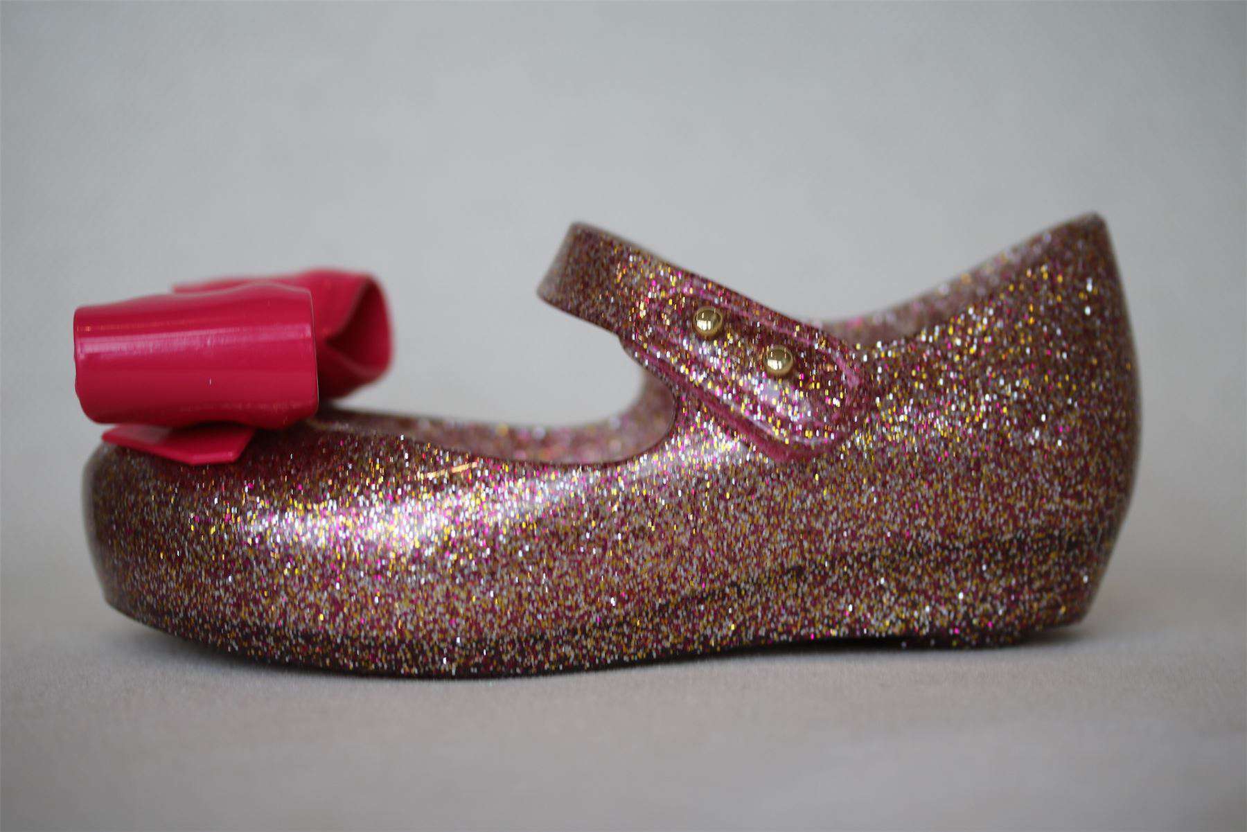 MINI MELISSA GIRLS PINK ULTRAGIRL BOW GLITTER JELLY SHOES EU 24 UK 7