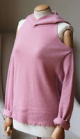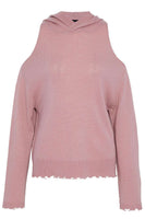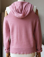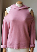 RTA JUNO COLD SHOULDER DISTRESSED CASHMERE HOODIE XSMALL