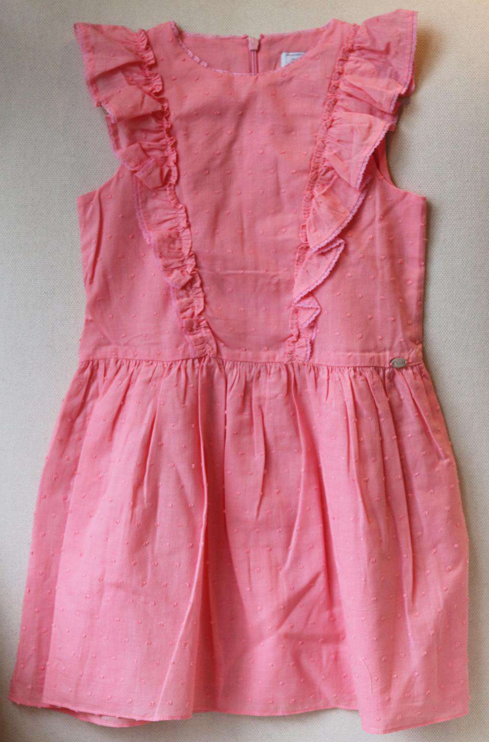 - A pretty pink dress by Tartine et Chocolate made in soft cotton with tufted dots and ruffles trimmed in lace.