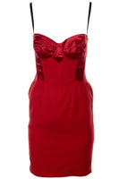 Dolce & Gabbana Red Satin Mini Dress. Red. Sleeveless. Sweetheart. Zip fastening - Back. No composition label. IT 46 (UK 14, US 10, FR 42). Bust: 34 in. Waist: 29 in. Hips: 34 in. Length: 29 in.
