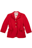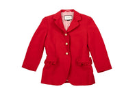 Gucci Red Silk Jacket. Red. Long Sleeve. V-Neck. Button fastening - Front. 51% Wool, 49% Silk, 71% Acetate, 29% Silk. IT 38 (UK 6, US 2, FR 34). Bust: 34 in. Waist: 30 in. Hips: 36 in. Length: 23 in.