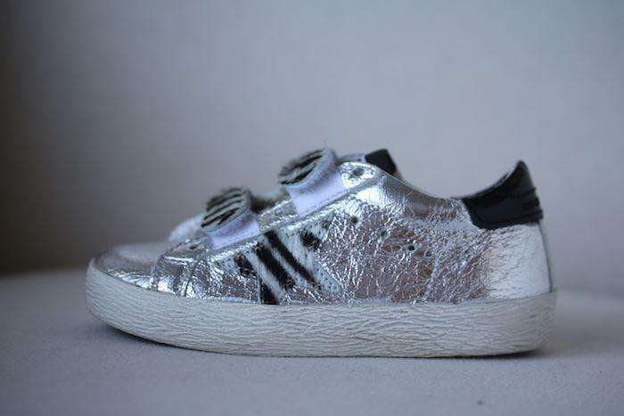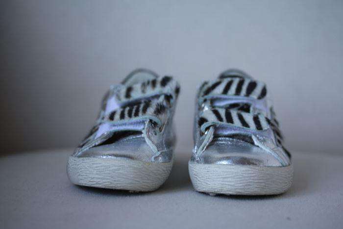 GOLDEN GOOSE DELUXE BRAND KIDS SILVER ZEBRA TRAINERS EU 24 UK 7