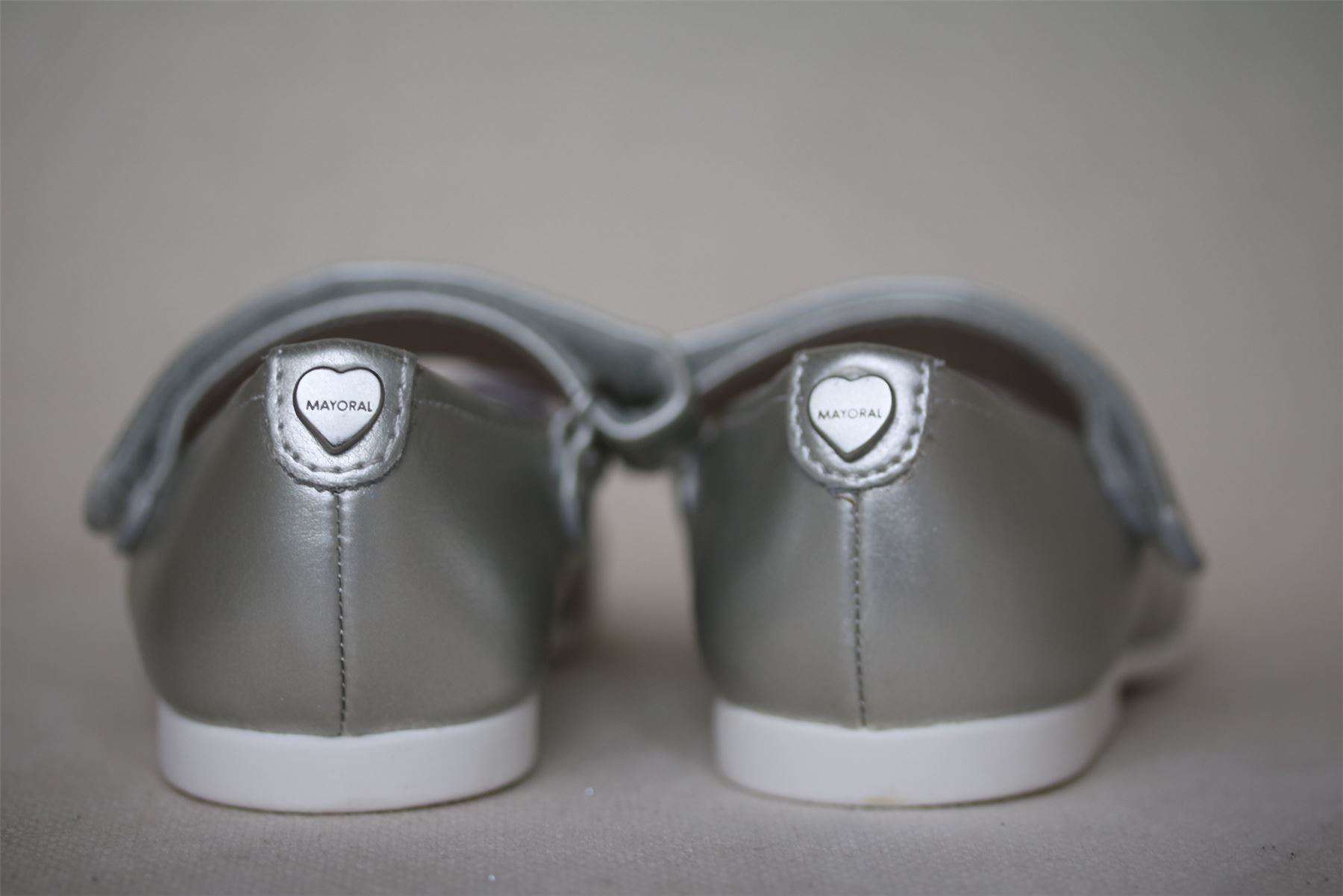 MAYORAL GIRLS SILVER SHOES WITH ORGANZA BOW EU 24 UK 7