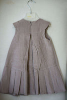 Dior taupe sleeveless dress and matching bloomers set in a fine soft corduroy cotton. The dress has a scoop neck with beautifully tailored box pleats that hang at the front and back. It is fastened with a concealed zip and fully lined with cotton, making it comfortable for the baby. The bloomers have an elasticated section of waist for comfort and elasticated leg cuffs.