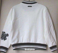 Dolce and Gabbana Jazz jacket. Boys white jazz jacket by Dolce and Gabbana. Made in mid-weight cotton sweatshirt jersey, with a woven feel inside. There are two side pockets and white striped ribbing on the cuffs and hem. Size - 2 years RRP: £465 Ref: SB2