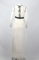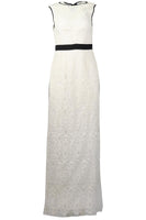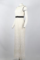 Beulah London Embroidered Organza Maxi Dress. White & Black. Sleeveless. Scoop Neck. Zip fastening - Back. No Composition Label. UK 10 (FR 38, IT 42, US 6). Bust: 35 in. Waist: 28 in. Hips: 40 in. Length: 60 in.