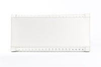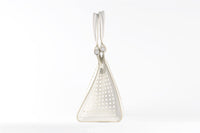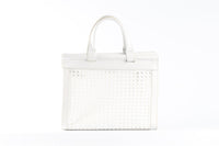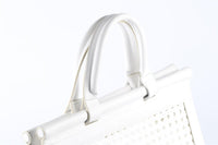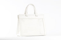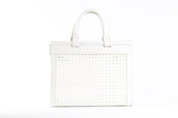 Blinq White Leather Handbag. White. Magnetic fastening - Top. Comes with - dustbag. Height: 10 in. Width: 12.2 in. Depth: 5.6. in. Handle drop: 4.5 in.