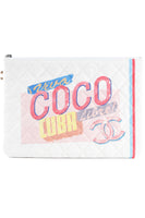Chanel White 2017 O-Case Medium Canvas Clutch. White. Zip fastening - Top. Comes with - authenticity card. Height: 8 in. Width: 11 in. Depth: 0.5 in.