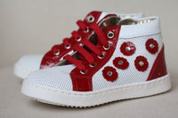 MONNALISA BABY GIRLS RED WHITE FLORAL LEATHER TRAINERS EU 22 UK 5