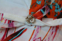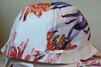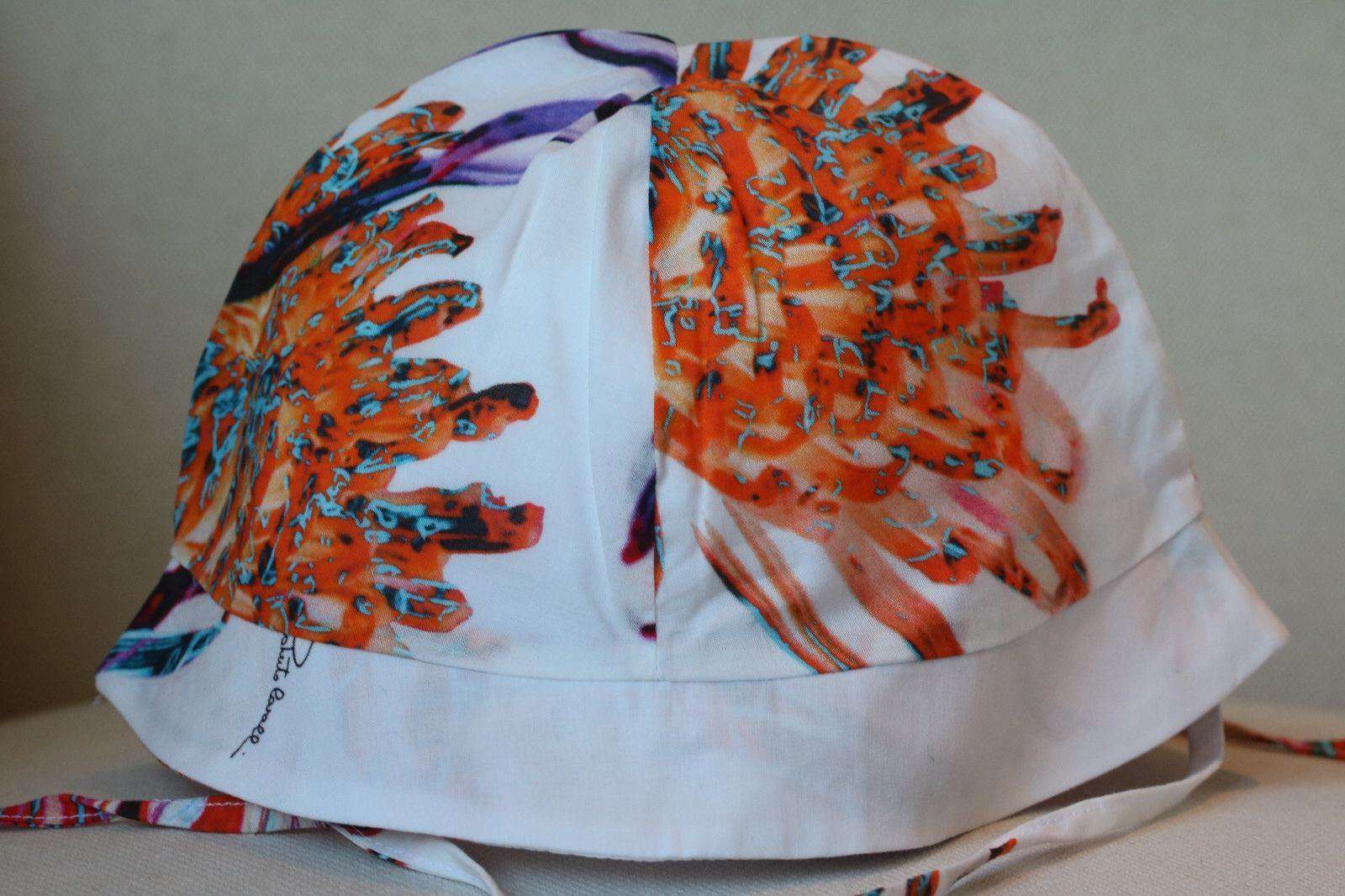 ROBERTO CAVALLI BABY HAT. Roberto Cavalli baby girls sun hat with all over print made from soft cotton. It has a 'RC' charm which gives a touch of glamour. The long ties are when tied help to keep it on the head and help to prevent it getting lost whilst out and about. Size - 18 months RRP: £83 Ref: SB18