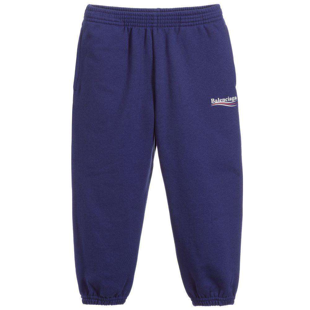 - Blue joggers by luxury brand Balenciaga, suitable for both boys and girls.