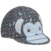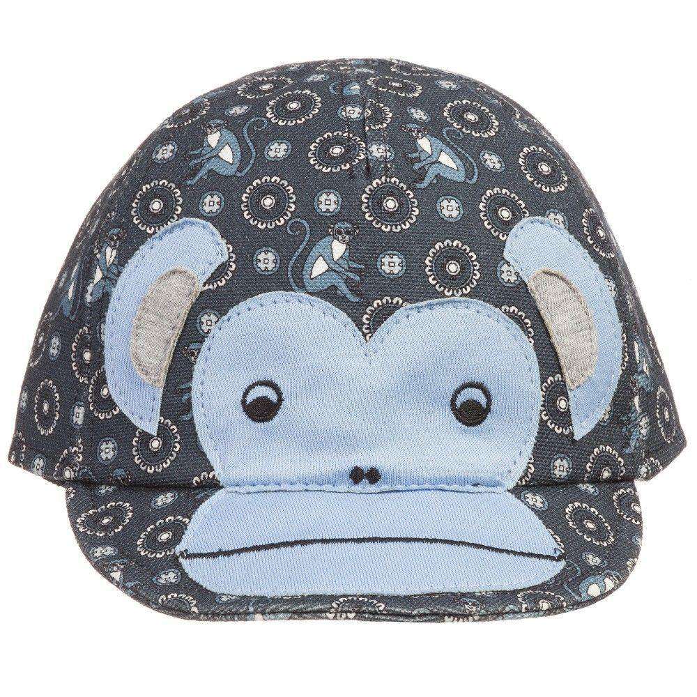 Dolce and Gabbana Hat. Baby boys adorable greyish blue cap by Dolce and Gabbana, made from woven cotton. For added comfort it has a cotton lining, a soft peek and an elasticated strap at the back. With a floral and monkey pattern, it has a cute monkey face appliqué at the front and the designer's logo at the back. Size - III (24-30 months) RRP: £115 Ref: SB21