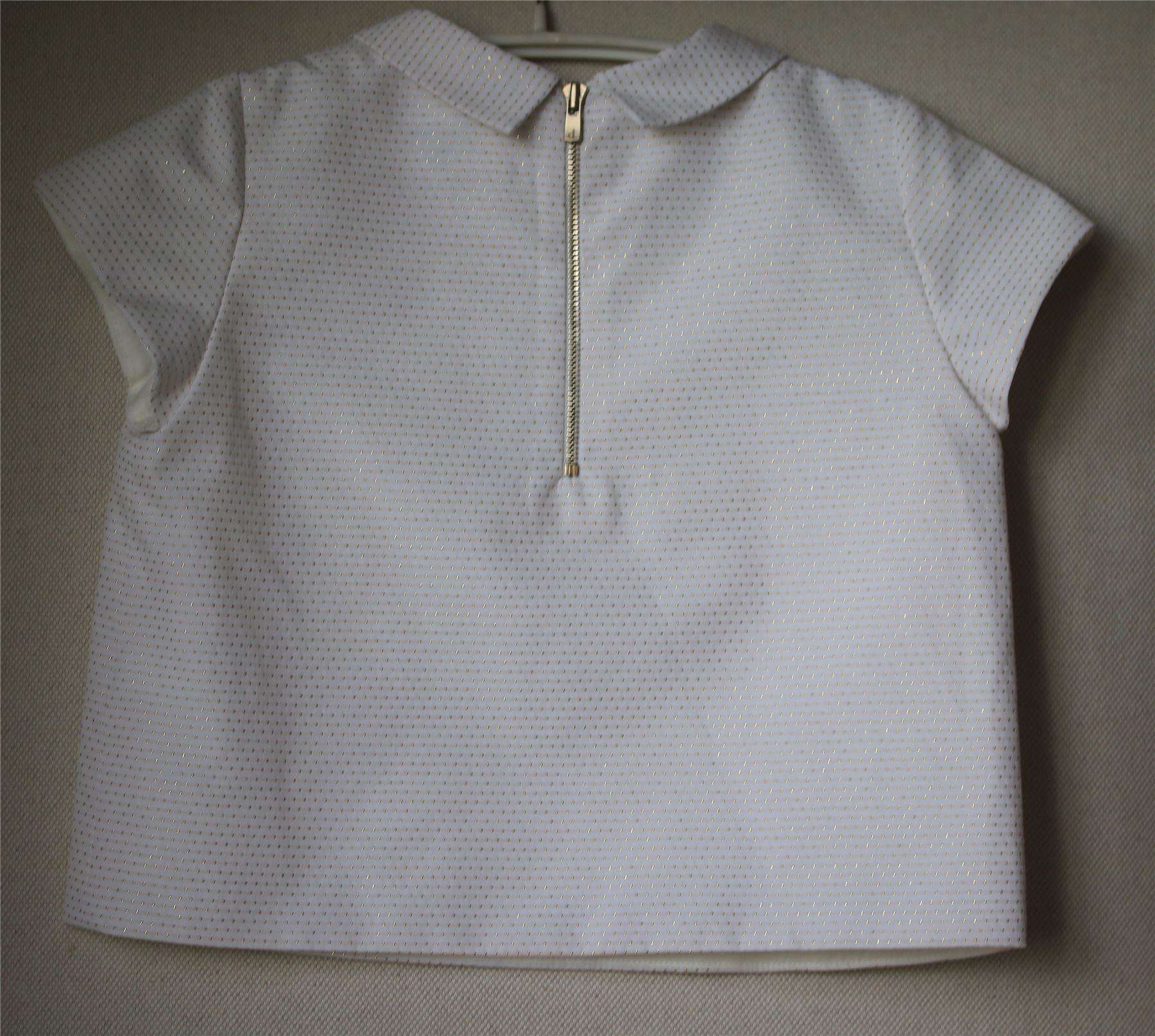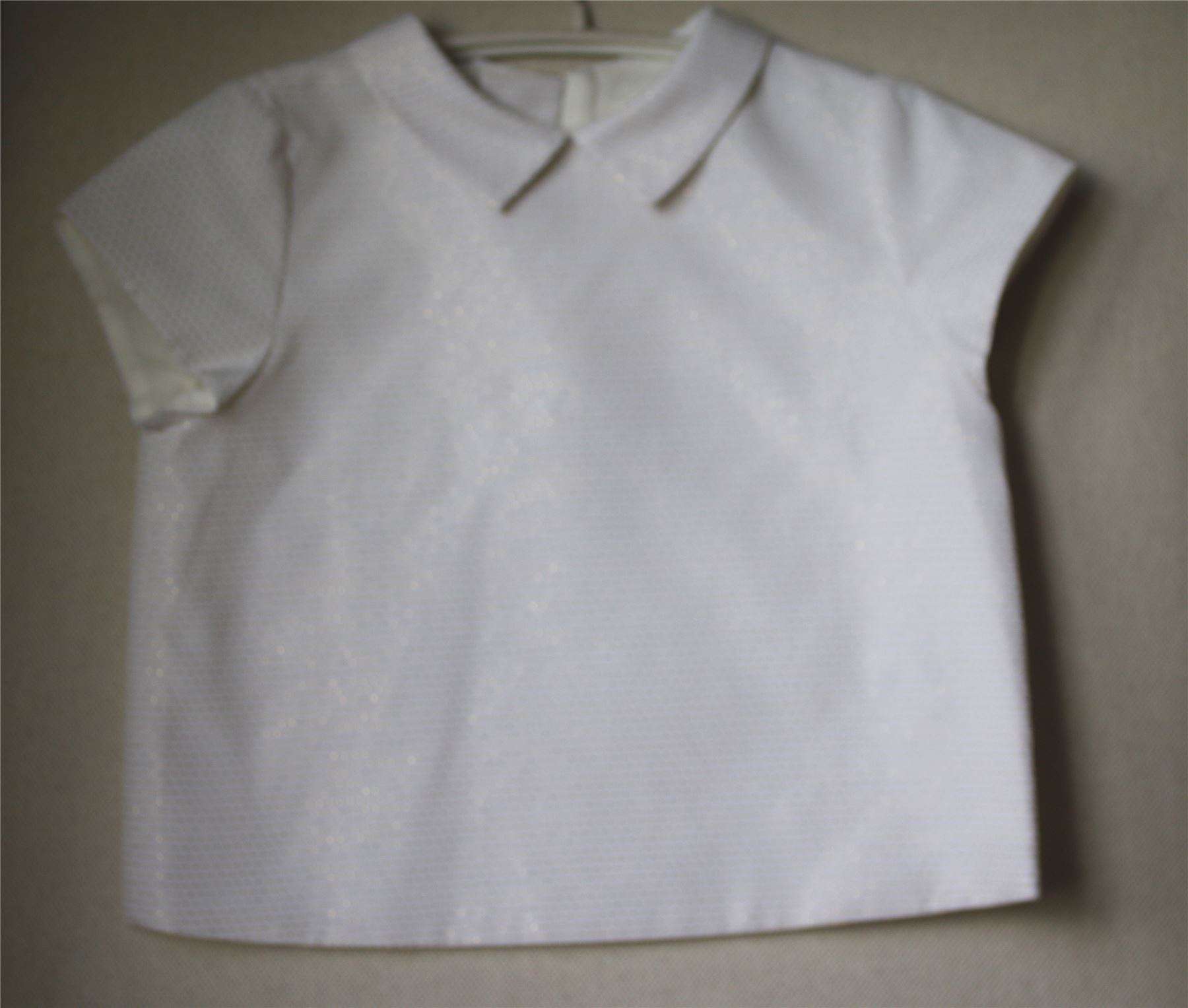 Jacquard blouse with back zip fastening and collar, sprinkled with tiny dots.