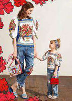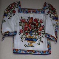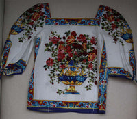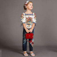 Continuing with their love affair of Italian heritage, Dolce & Gabbana have created a beautiful mini-me print of traditional Sicilian 'Caltagirone' tiles in blue, pink, yellow and white. A vase of flowers, 'Vaso Fiori', is printed on this delightful mini-me blouse, made in cool and comfortable, fine cotton.