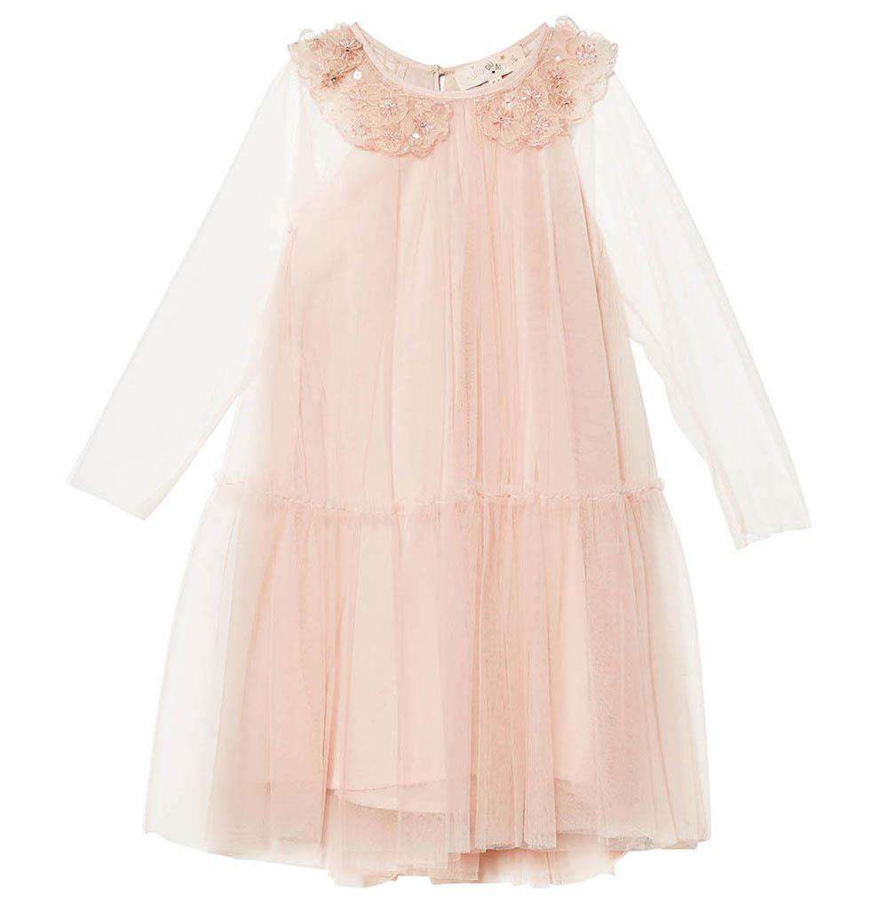 - The flowy tulle dress is a sweet addition to this adorable dress that features a playful sequin collar.
