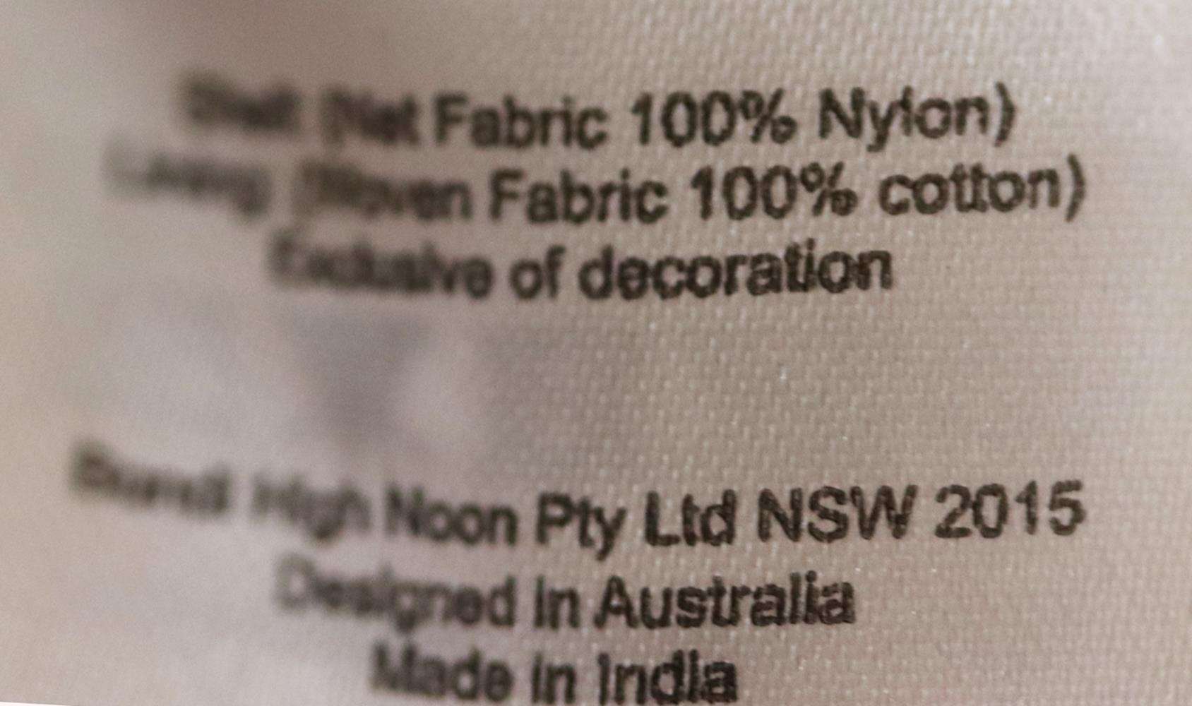 - 100% Cotton; net fabric: 100% nylon; lining: cotton.