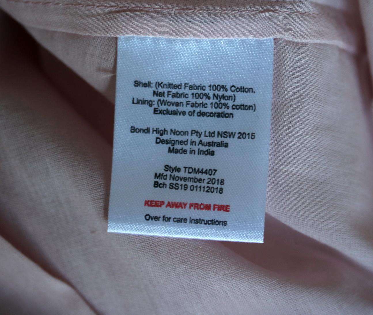 - 100% Jersey cotton bodice, 100% nylon tulle skirt, 100% cotton voile lining.
